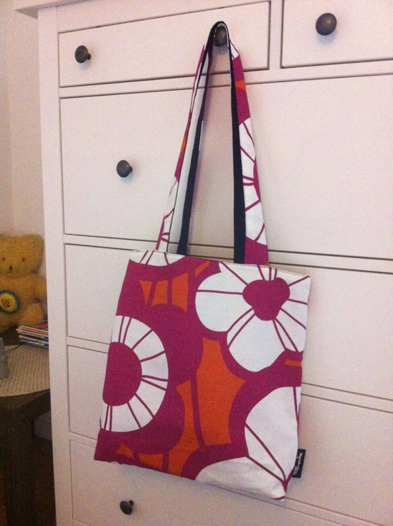 Av någon anledning vill jag att insidan av väskan ska vara lika fin som utsidan. Därför fodrar jag nästan alltid kassarna jag syr. Men om man vill spara tyg kan man också göra så här: