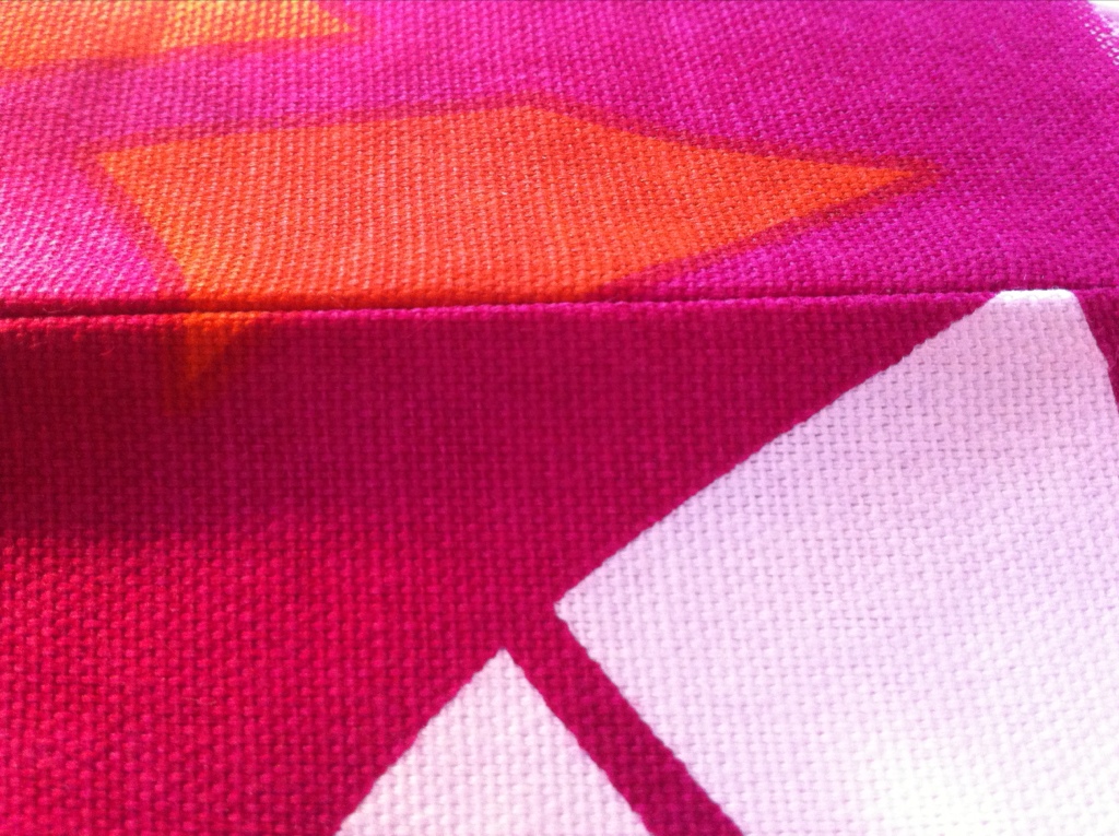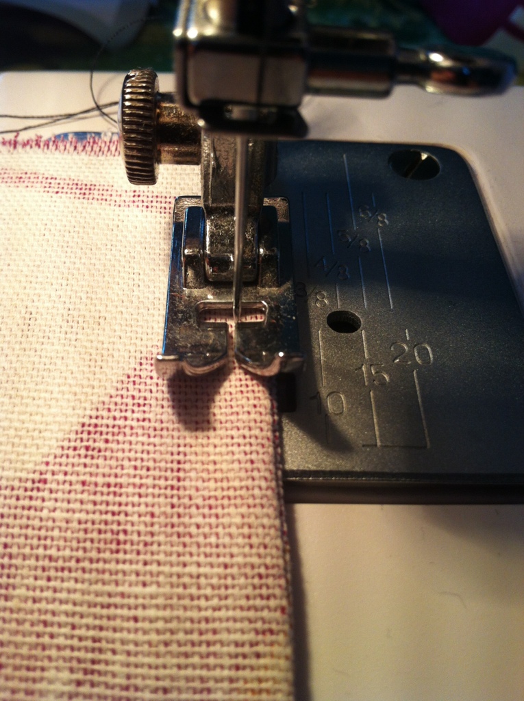 1. Sy ihop tygstyckena med rätsidan utåt. (Ja, det känns fel, men så ska det vara…) Sy nära kanten.
