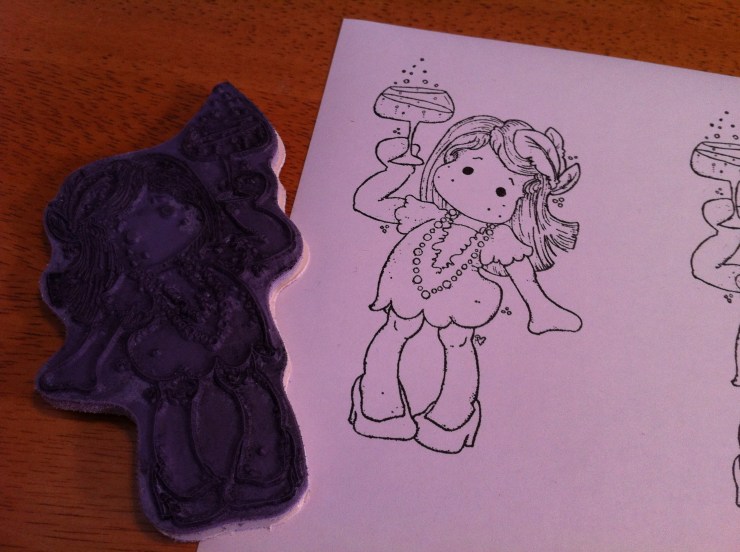 I tisdags kom min pysselkompis Lykke på scrappingbesök. Men båda två satt mest och stämplade och blev höga på doften från Promarkerpennorna. Men det är så rogivande att sitta och färglägga. Jag älskade det som barn, och jag älskar det fortfarande. Och nu hade jag två nya stämplar som jag testade. Det kommer bli många fina kort, både festinbjudningar och julkort.