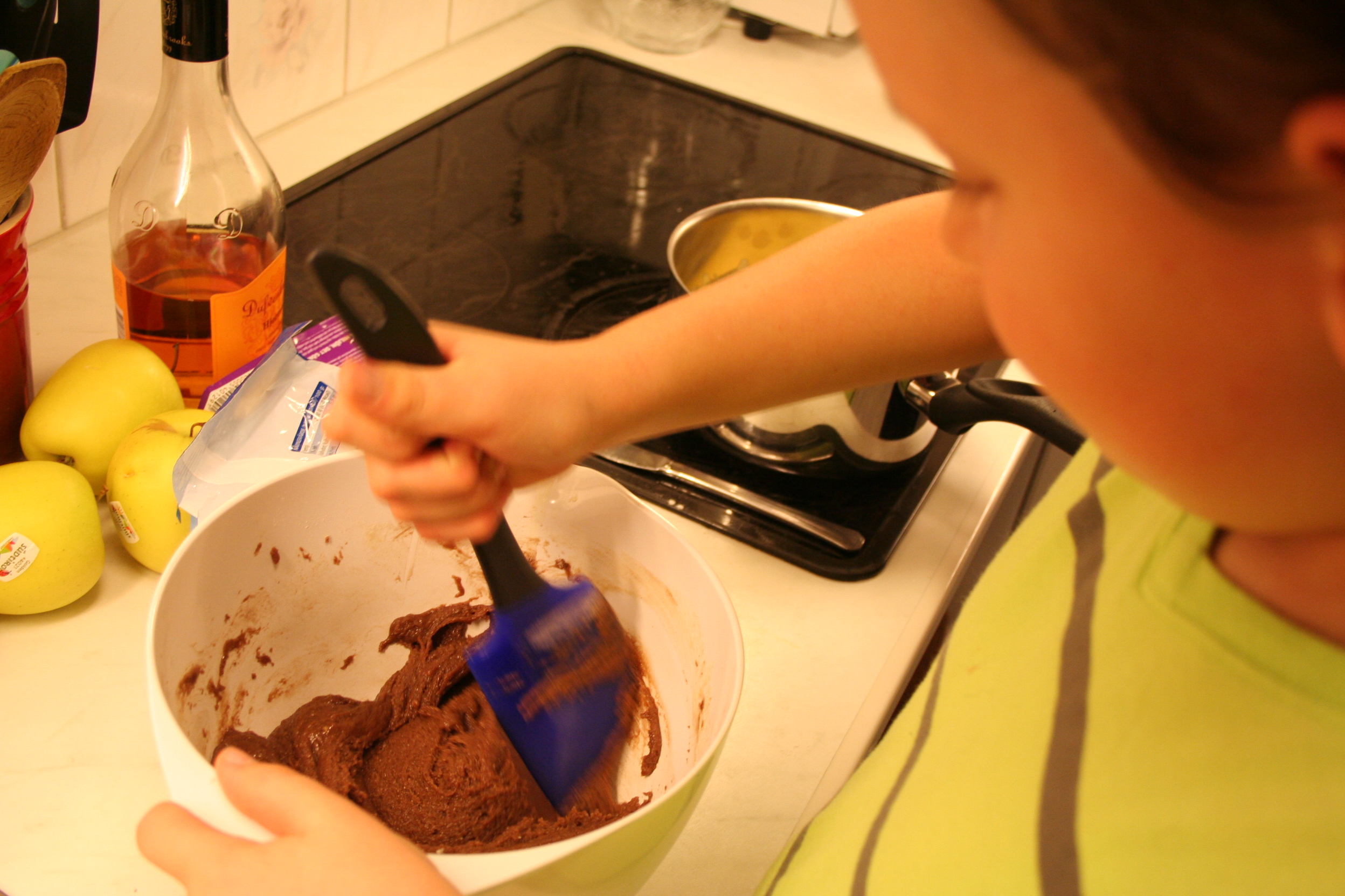 Mirke hjälpte Katja med tårtbaket. Bara att testa om äggvitan var tillräckligt vispad var lite läskigt.