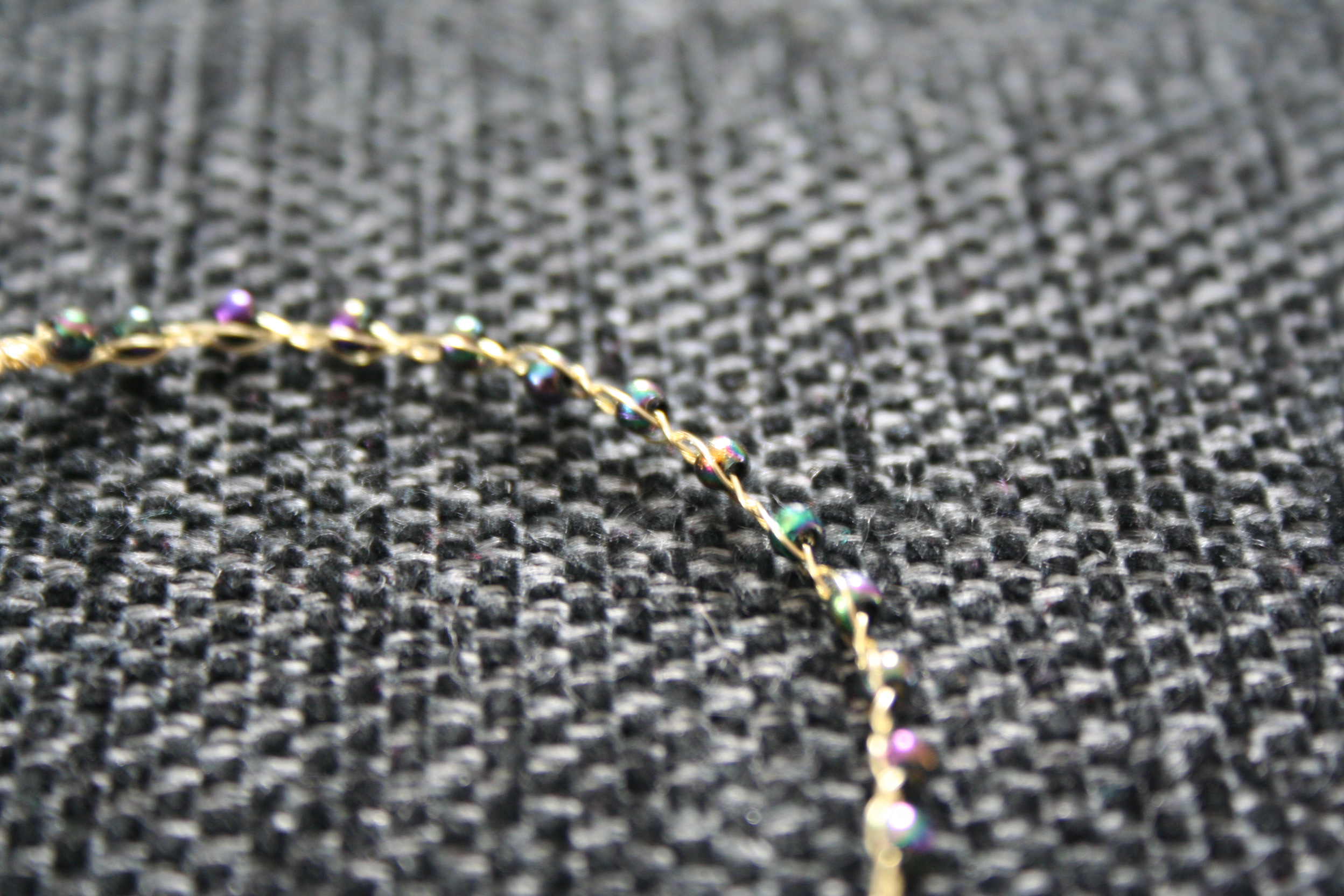 Ett flätat armband med pärlor.