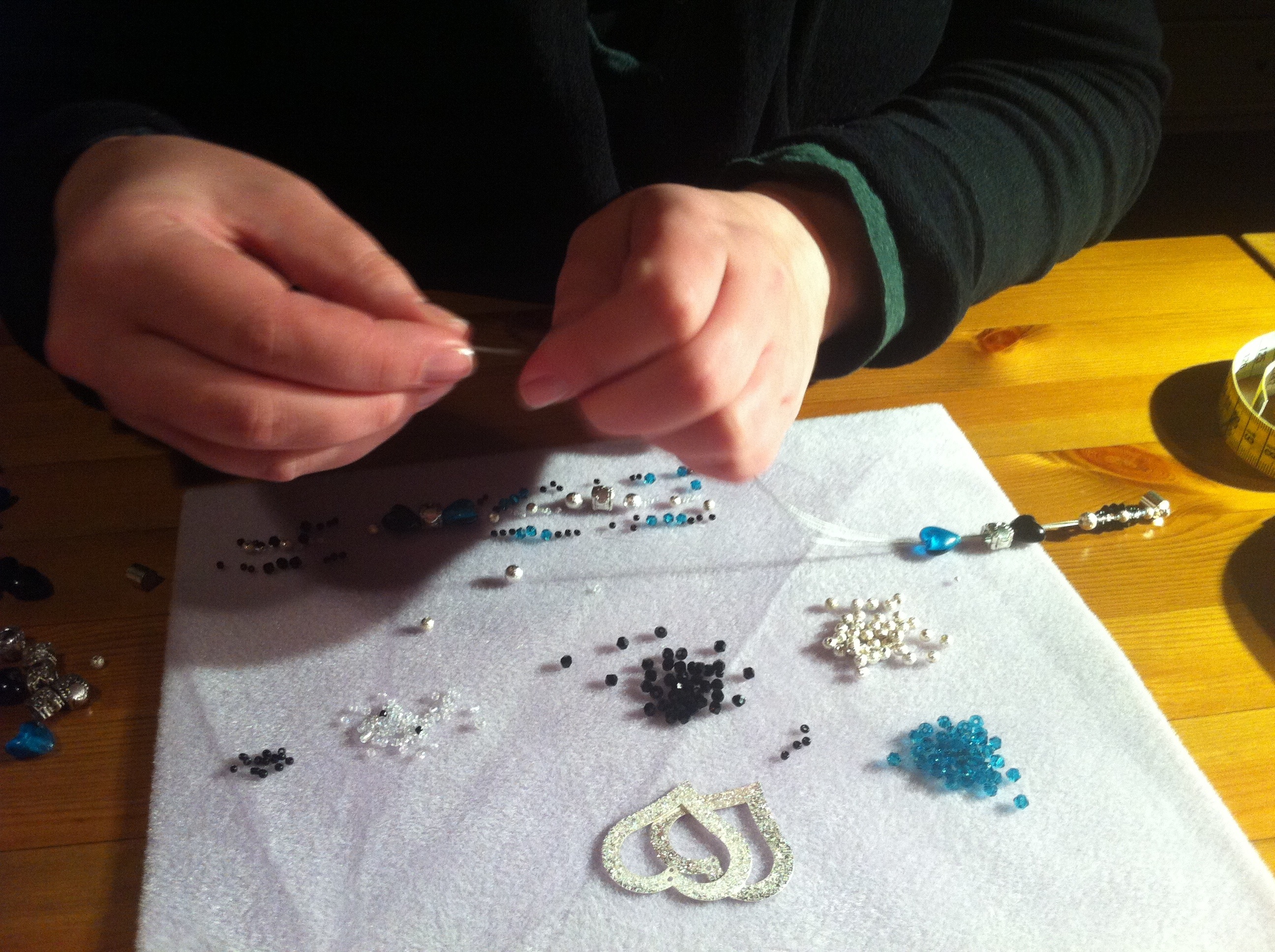 I dag drog jag med min kompis Anette till smyckesbutiken och nu sitter vi i full koncentration och skapar vackra smycken.