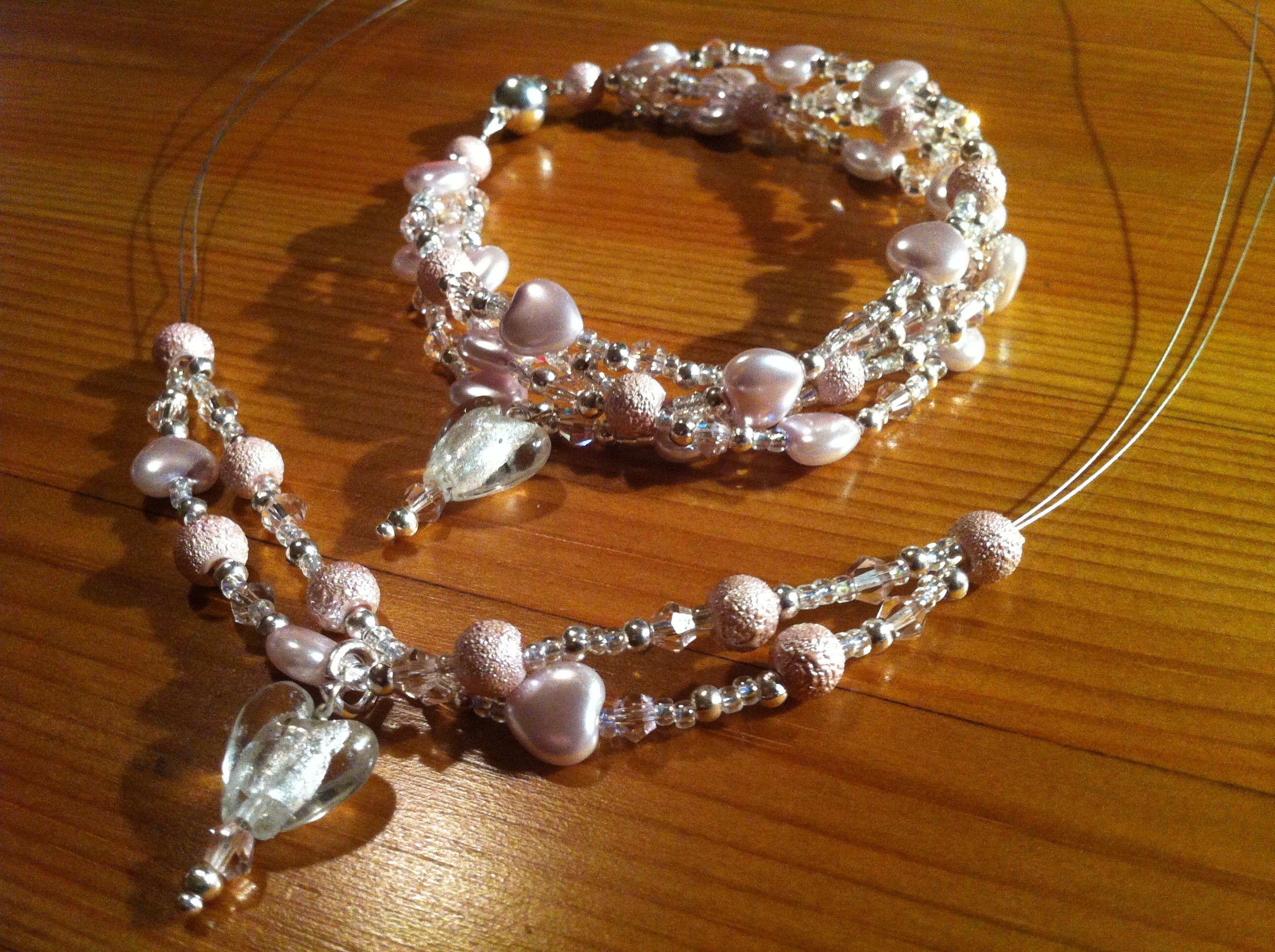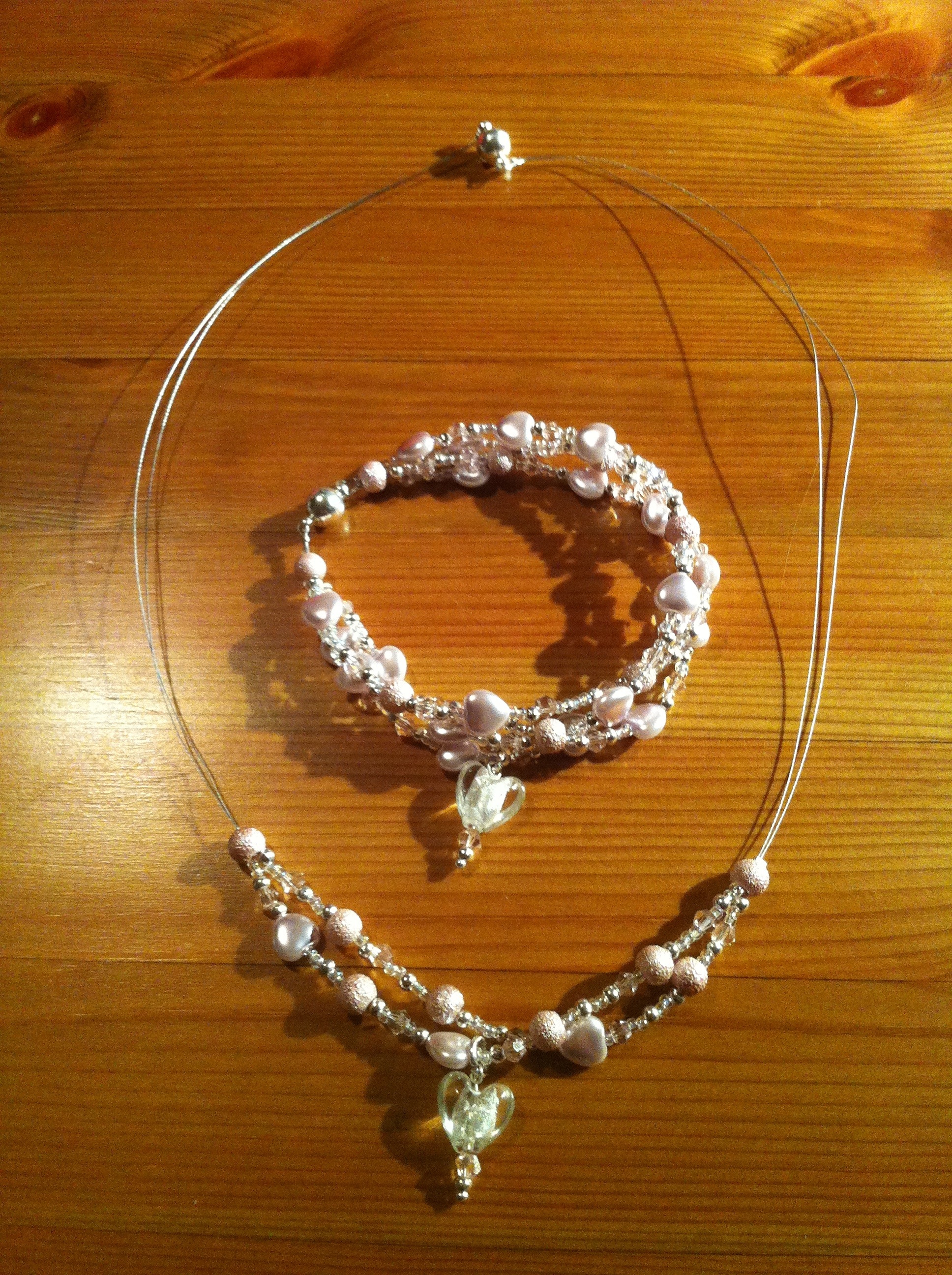 Gjorde matchande hjärthängen. Är rätt nöjd. Armbandet kommer jag definitivt att använda. Halsbandet… Nja, kanske någon gång.