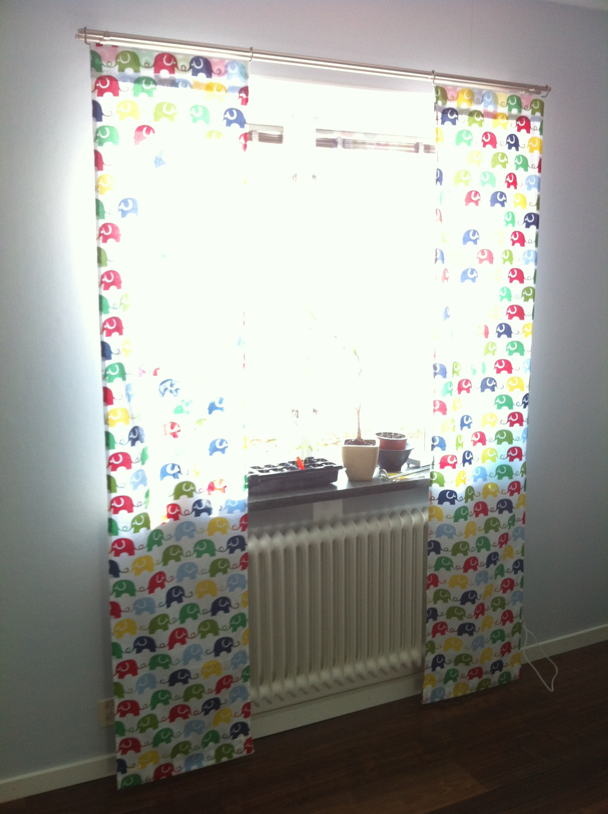 Hur som helst. Nu hänger även elefantgardinerna i fönstret!