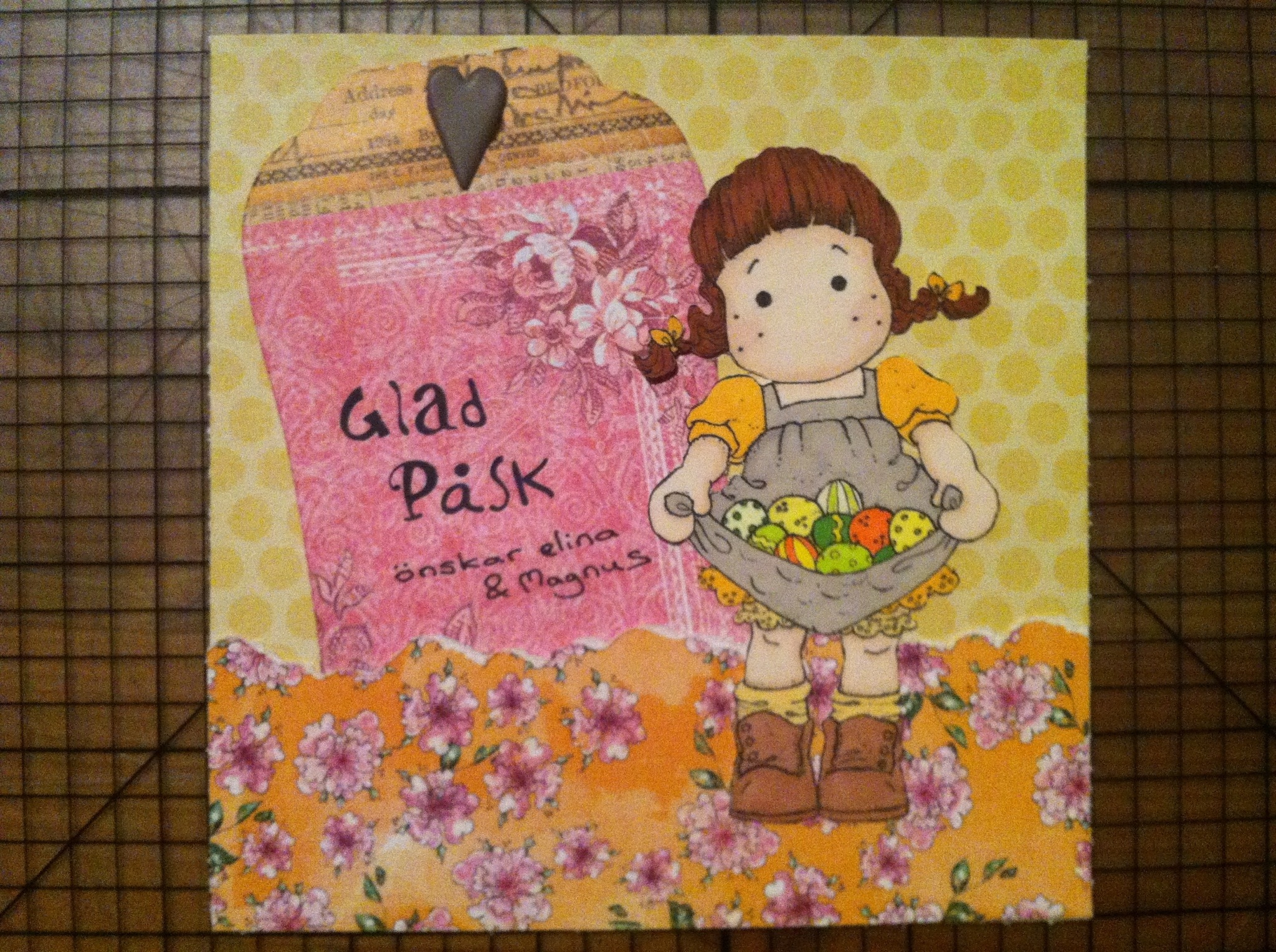 Hade även förberett en massa påskkort. Men fick problem med händerna och korten blev aldrig klara – så mina stämplade påskmotiv får vänta ett år. Här är ett färdigt kort dock:
