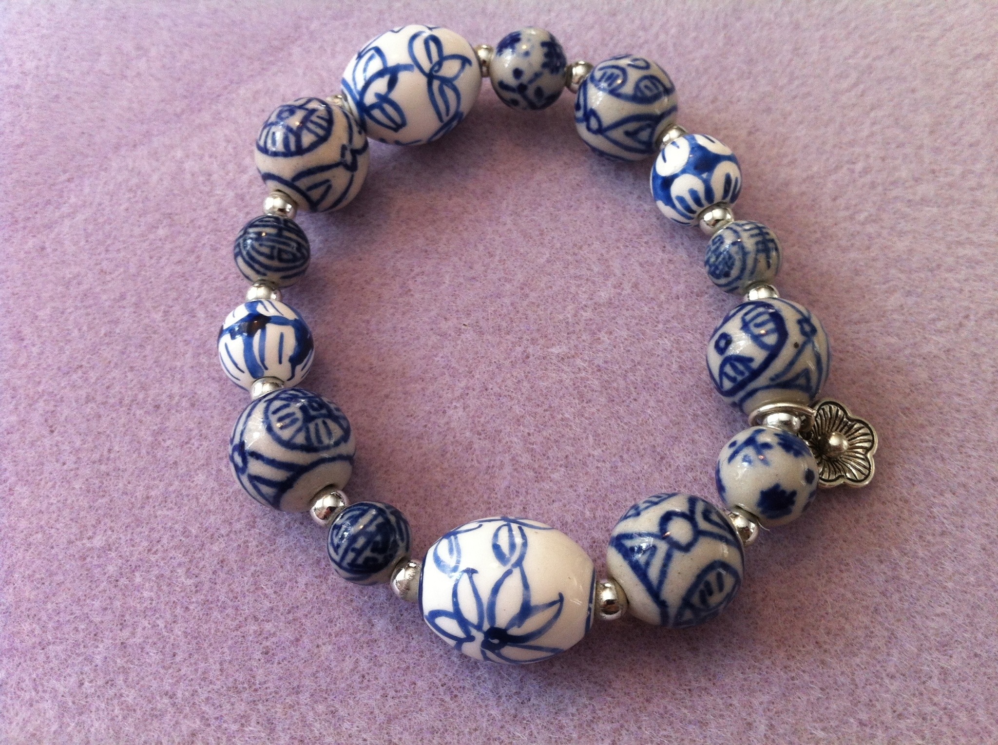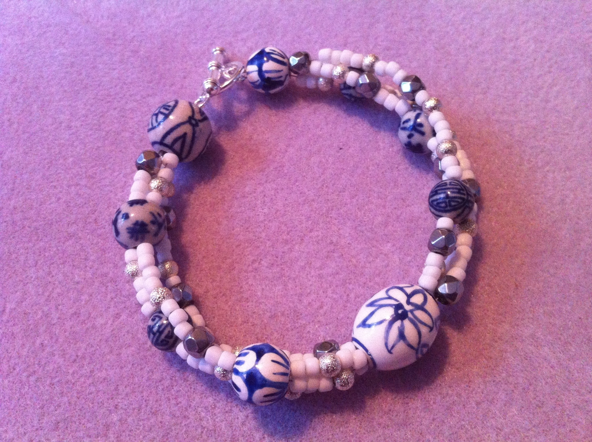 Höll mig till vitt, blått och silver. Och så här blev det nya armbandet i perfekt längd: