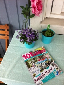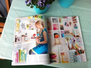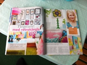 Ett tidigare nummer av samma tidning gjorde inget större intryck på mig. Jag tyckte att det var mycket stickning och virkning som jag inte var intresserad av, men i detta nummer fick jag några bra tips. Jag tror att det till viss del beror på att mycket gick i färger som jag gillar – turkost, ljusgrönt, rosa… och prickigt eller blommönstrat. Detta nummer såg som helhet mycket mer tilltalande ut. Jag gillade bland annat ett hemma hos-reportage hos en tjej med många fina inredningsdetaljer. Precis sådana färger och mönster jag gillar.