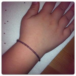 Min sambos dotter gjorde samtidigt ett eget armband av samma lila pärlor. Så här snyggt blev det: