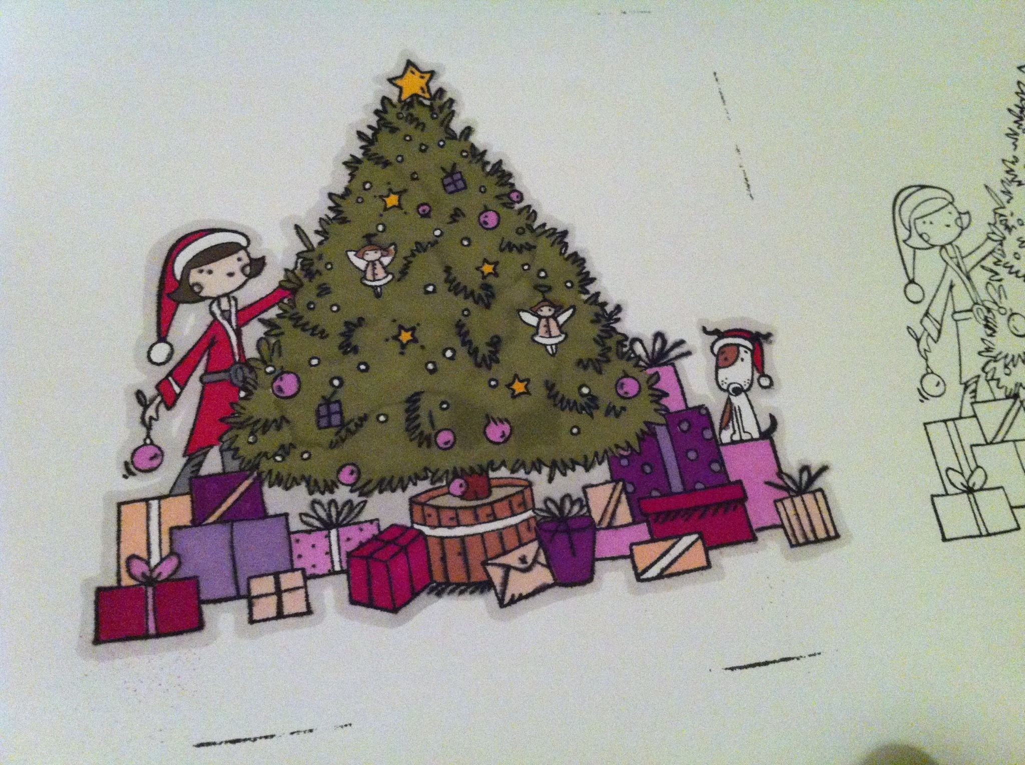 För plottrigt för Promarkerpennorna. Granen hann dessutom torka innan jag var klar så den är inte alls så jämn och fin som jag hade önskat.