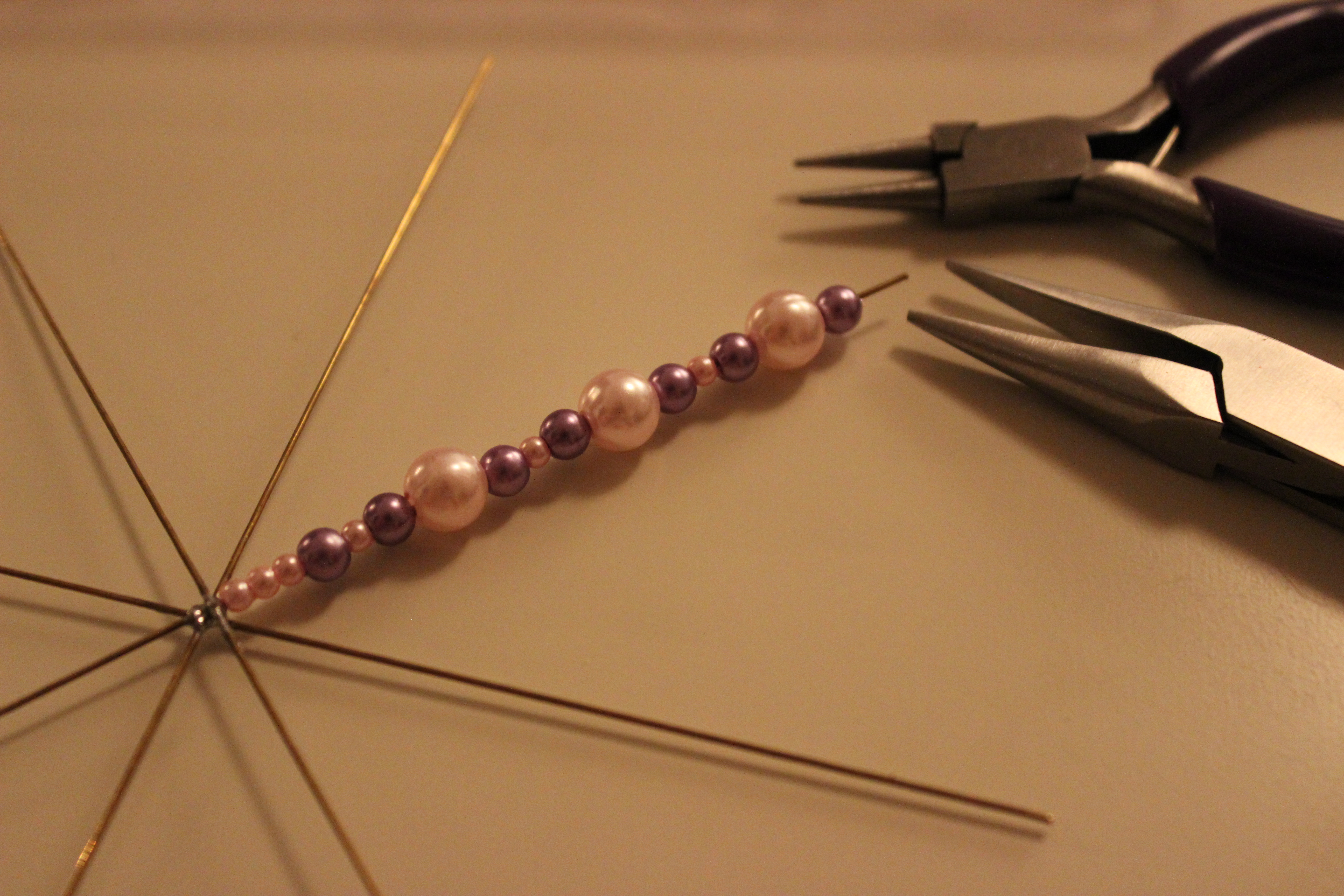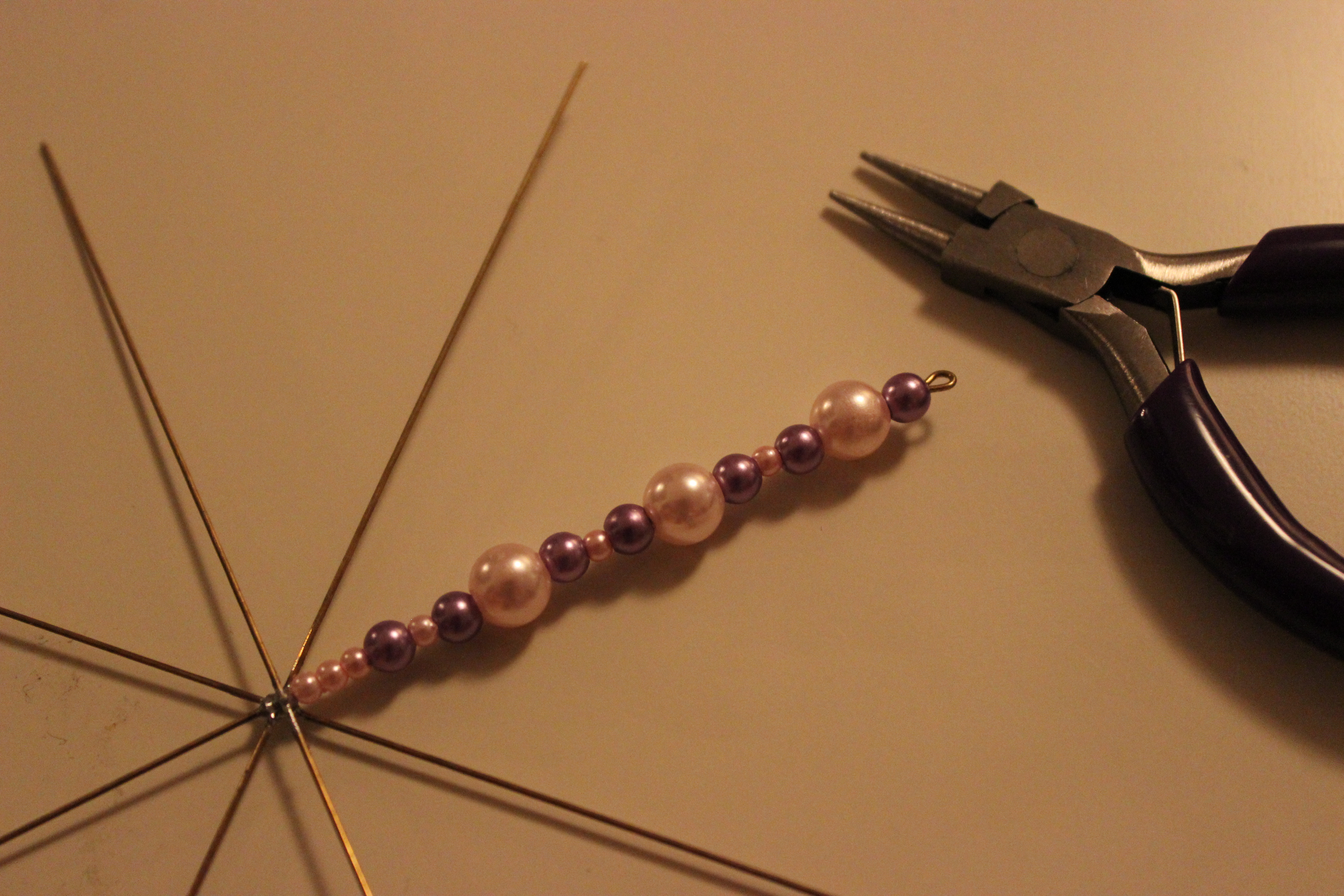 Det här är nog det roligaste men också något av det lättaste julpysslet jag gjort i år. Dessutom blir det så snyggt! Man trär på pärlor helt enkelt och sedan böjer man till ändarna. Lättast är att trä på med pärlor så att man slipper knipsa av ståltråden.