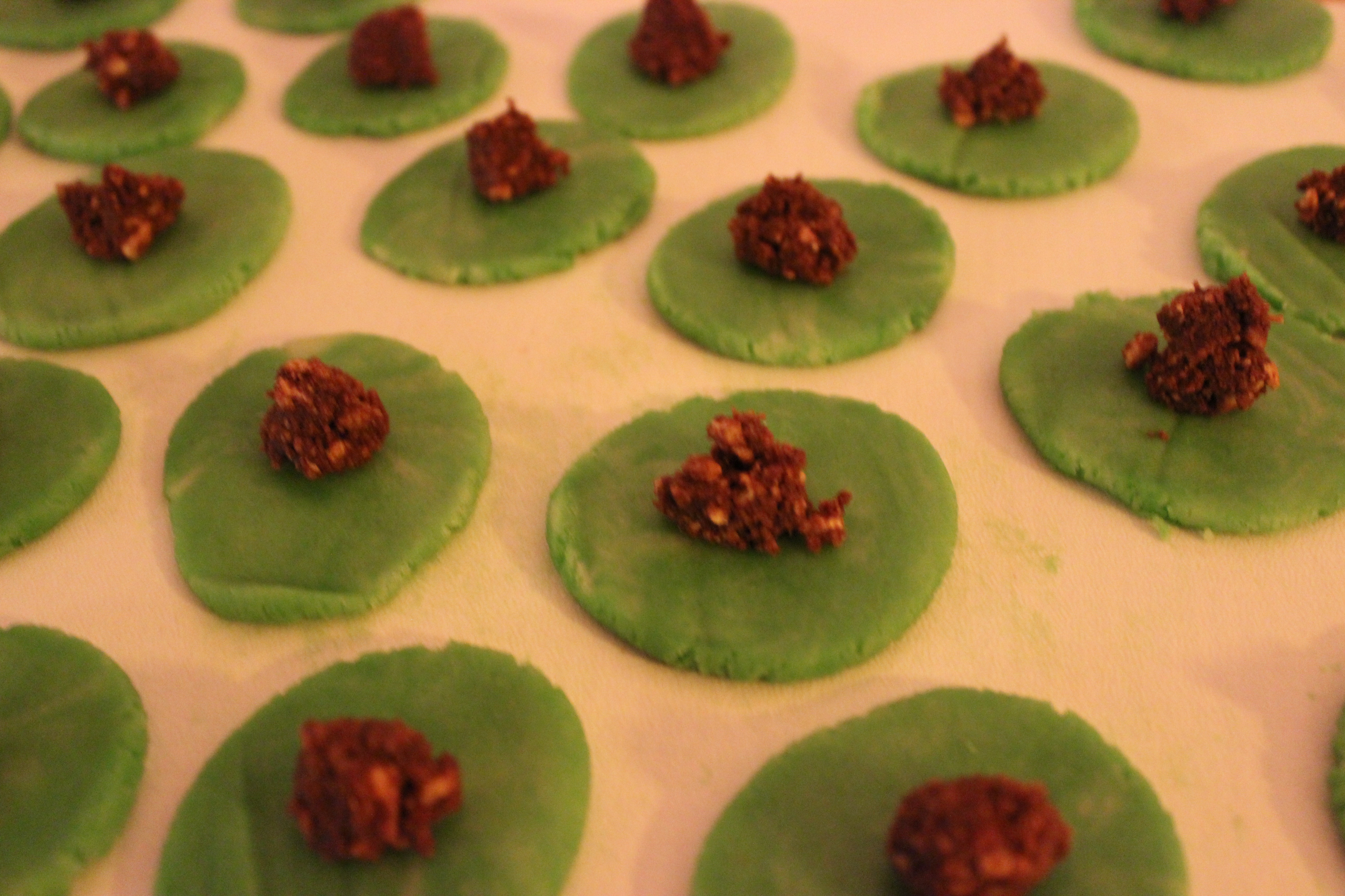 På varje platta lade jag en klick arraksmassa.