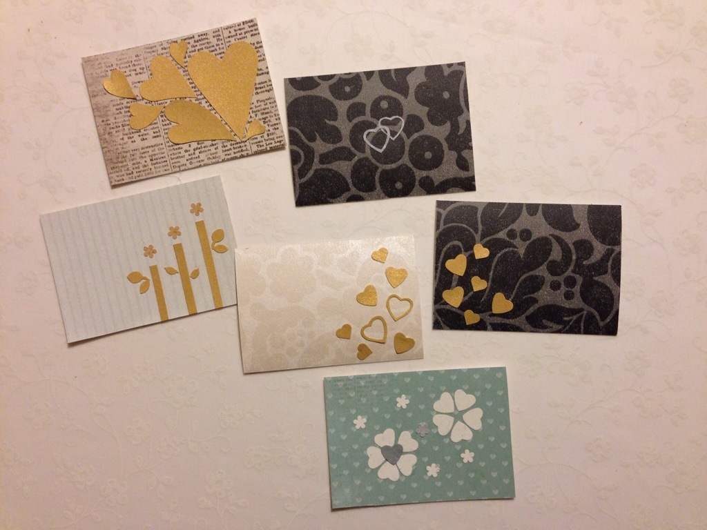 Idag blev det invigning av min nya pysselhörna! Det fick bli några små kort. Elina är dock den stora scrapparen av oss två, mina alster är betydligt enklare…