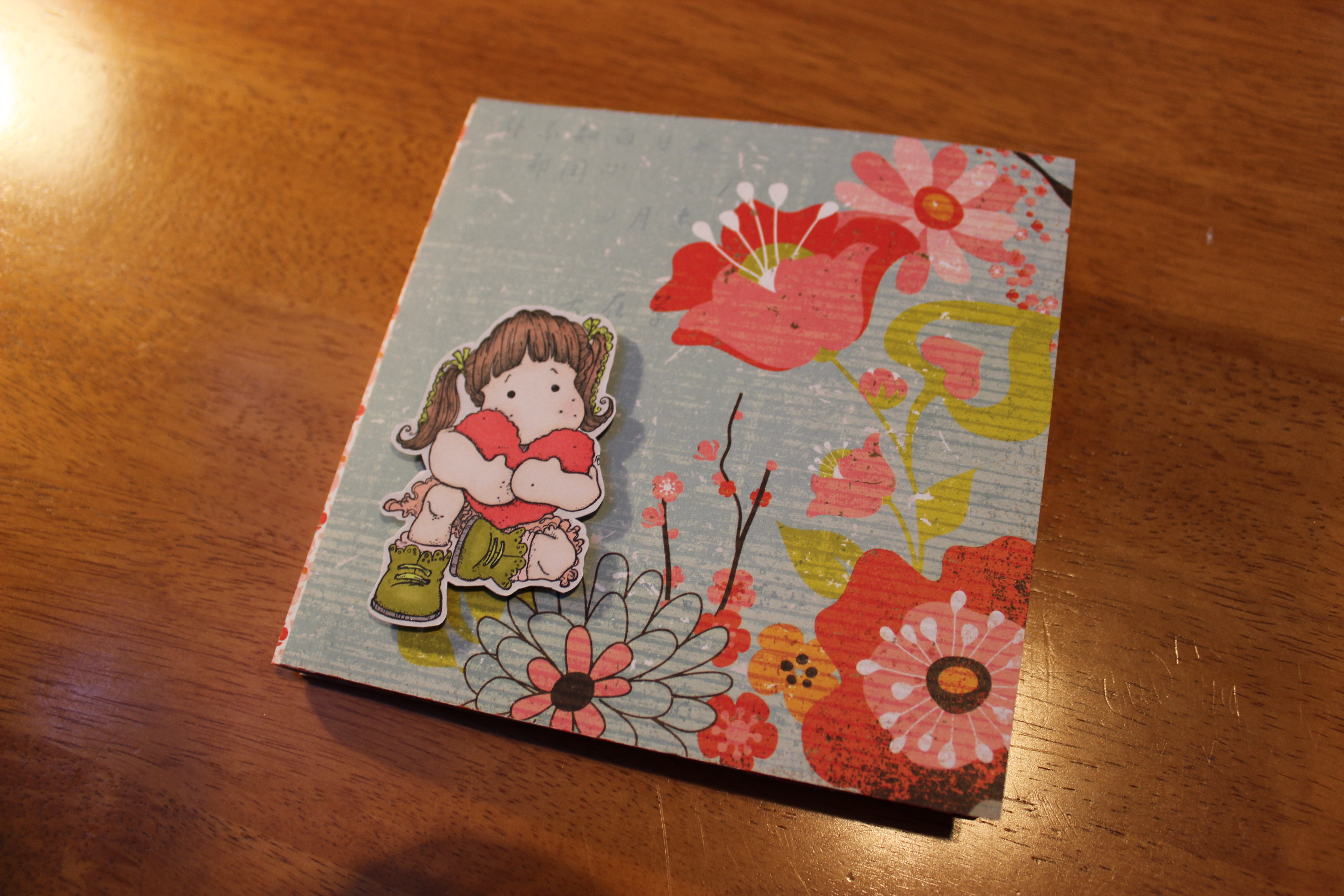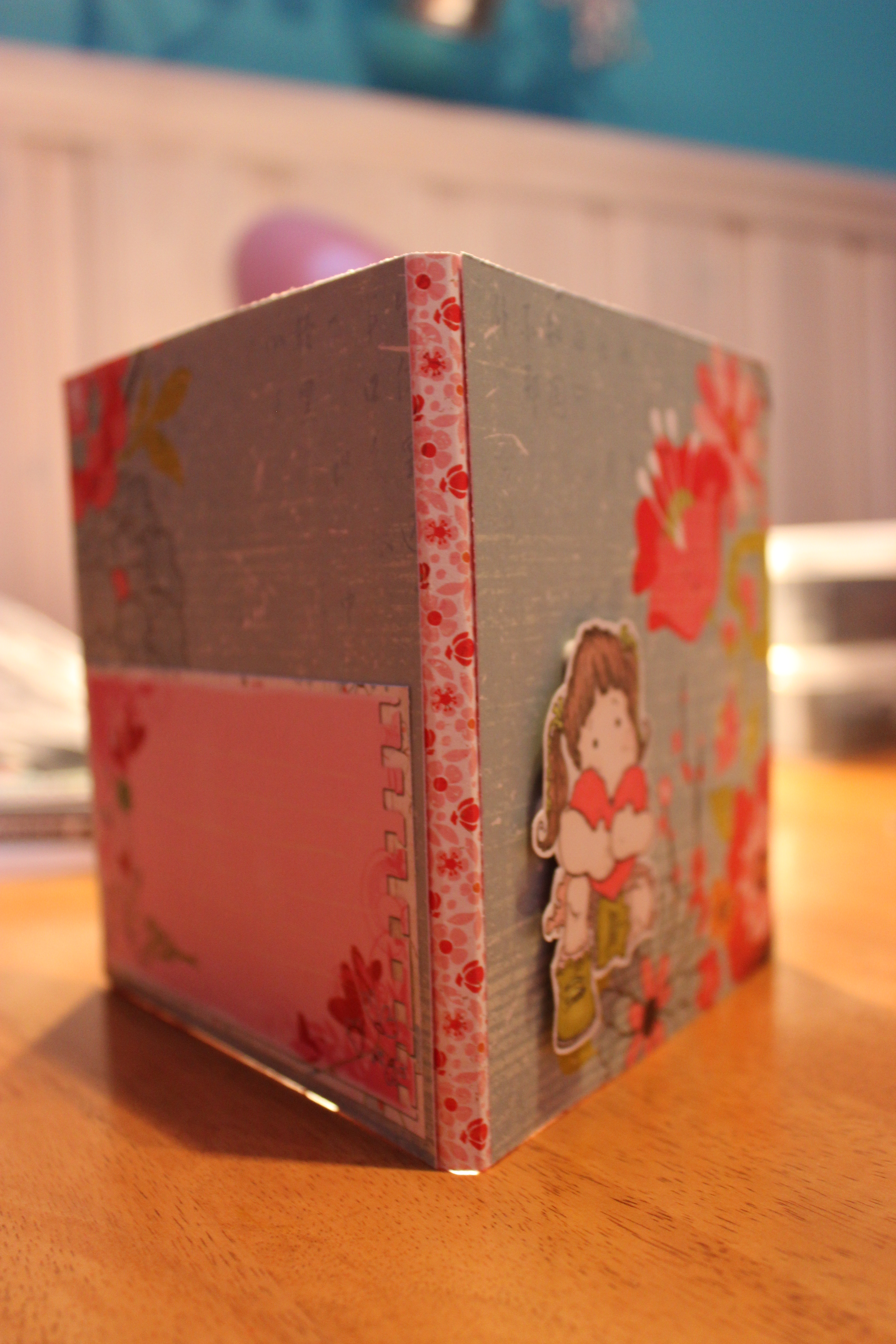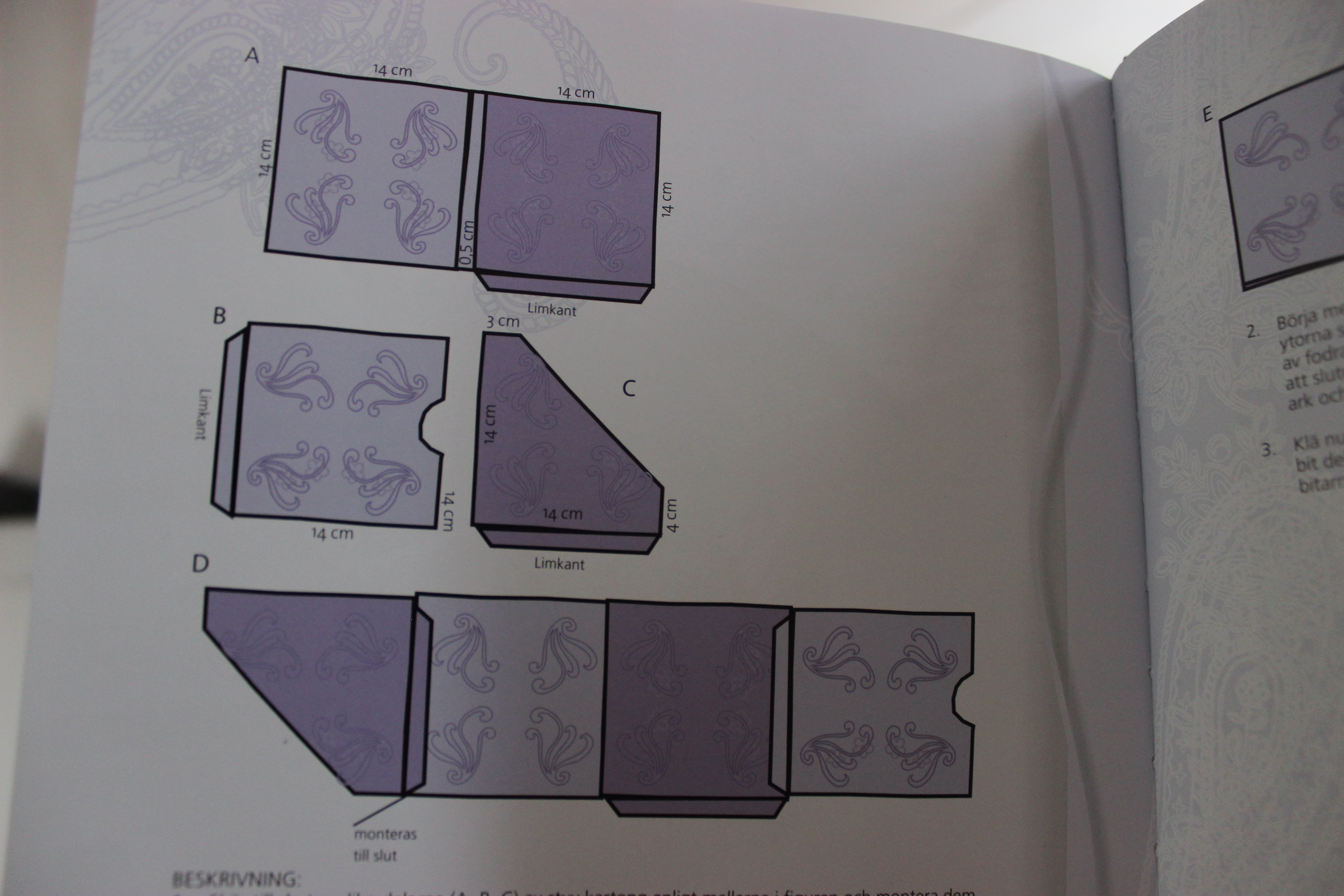 Det ser mer avancerat ut än vad det var. Även om jag var rätt förvirrad när jag vek och klippte och klistrade. Så fort jag och Lykke började prata för mycket var det lätt att jag gjorde fel. Inspirationen kommer från en bok som jag fick redan 2008 av Sara – ”Nya scrapidéer – minialbum och dekorering” av Cathrine Rein Carlson och Turid Eide.