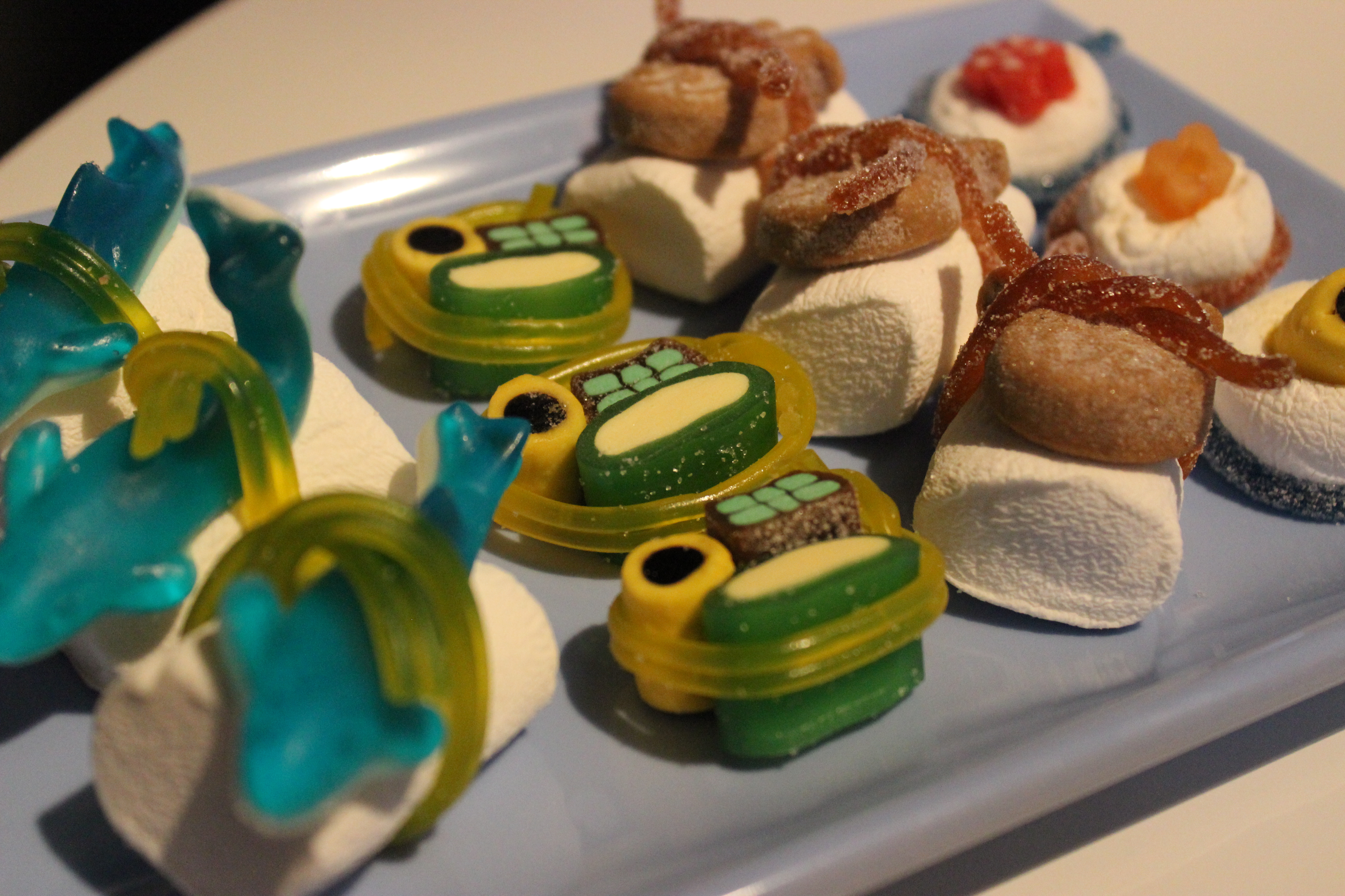Det är lördag. Och vad passar då inte bättre än lite godispyssel! ild ugsep 157 Jag såg det först när en kollegas barn hade gjort godissushi. I efterhand har jag sett många göra det. Det är ett lätt och roligt familjepyssel att göra på lördagen, och det blir så fint. ild ugsep 146 Jag använde marshmallows till ris. Sedan var det bara att vara så där underbart kreativ. Lite snören är bra att ha för att knyta ihop alstren. ild ugsep 147 Jag hade tänkt köpa malacos fiskgodis, men hittade inte det. I stället blev det haj- och bläckfisksushi. De blev otroligt söta så ett tips är att blanda med saltlakrits. Och vill man doppa som riktig sushi kan man smälta lite mörk choklad eller göra en kolasås till. /Elina