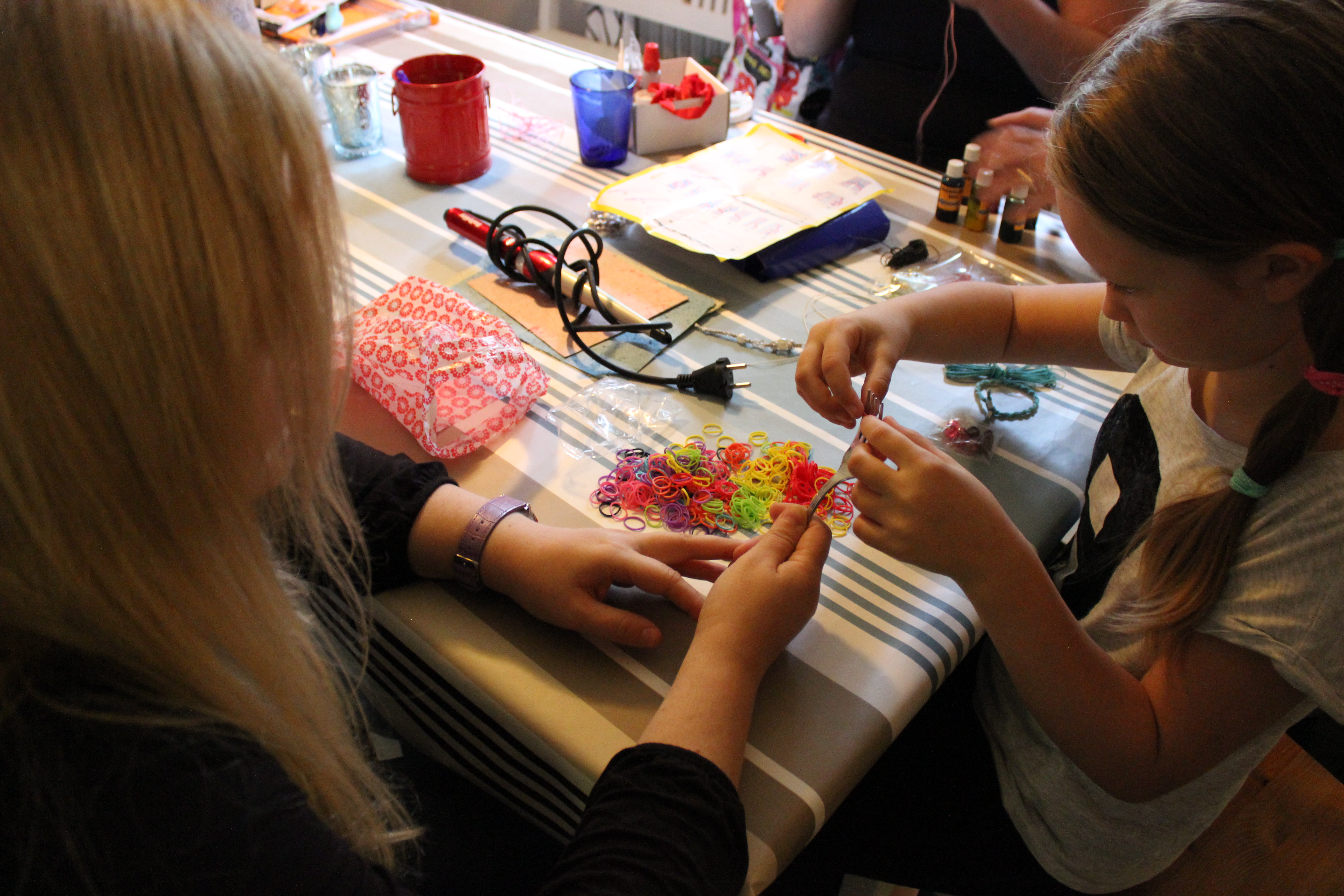 I helgen samlades vi tre systrar, mamma, moster och Katjas äldsta dotter Marja för att pyssla tillsammans. Vi fick en hel del gjort; eget papper, julkort, nyckelring och armband bland annat. Marja var den effektivaste pysslaren och skapade alster på alster.