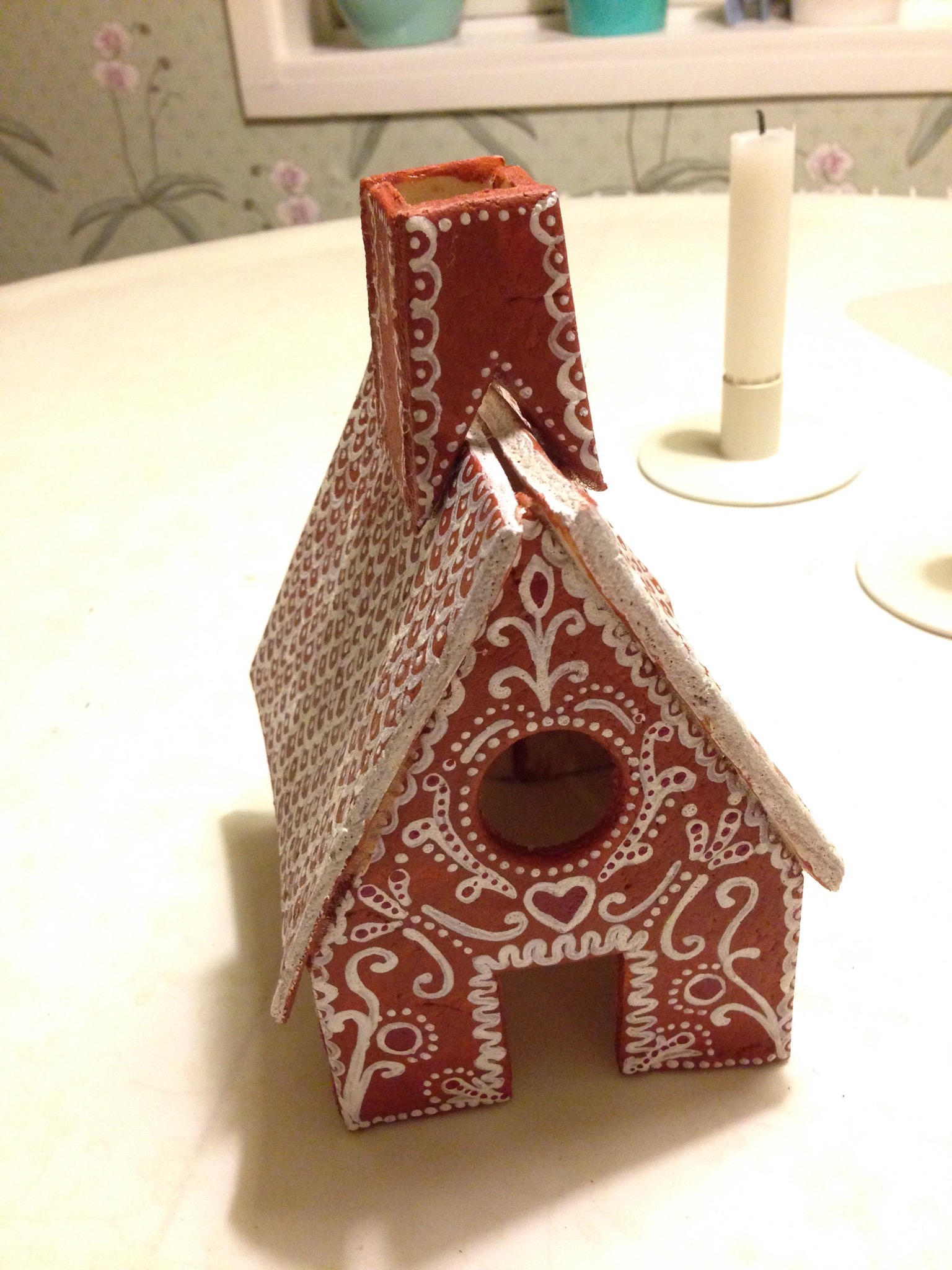 Jag brukar ha svårt att lyckas med glasyrdekorationerna, desto lättare att pynta med pensel och färg. Dessutom brukar jag inte vara alltför sugen på att äta huset när det stått och samlat damm ett tag, så i år fick det bli trolldeg!