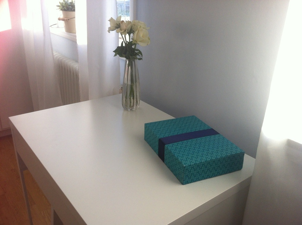 Här är ett enkelt pyssel jag gjorde igår kväll. Jag hade kvar lådan till min läsplatta, och eftersom den var stadig och hade ett rätt bra format bestämde jag mig för att klä den i tyg.