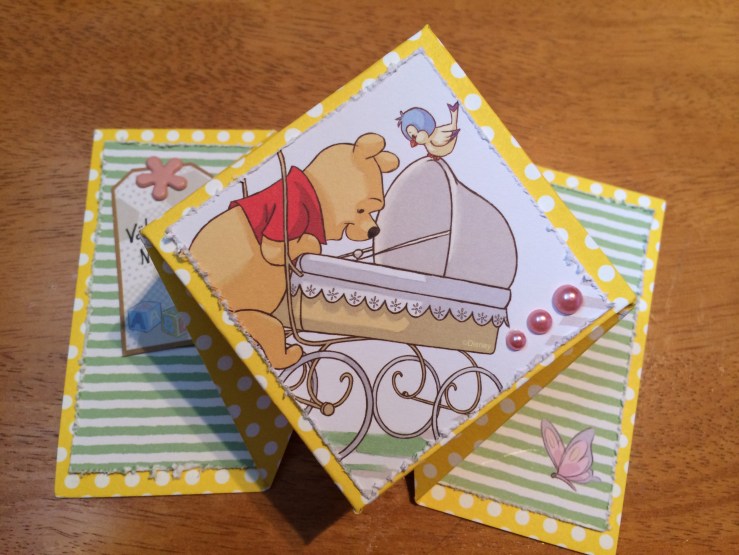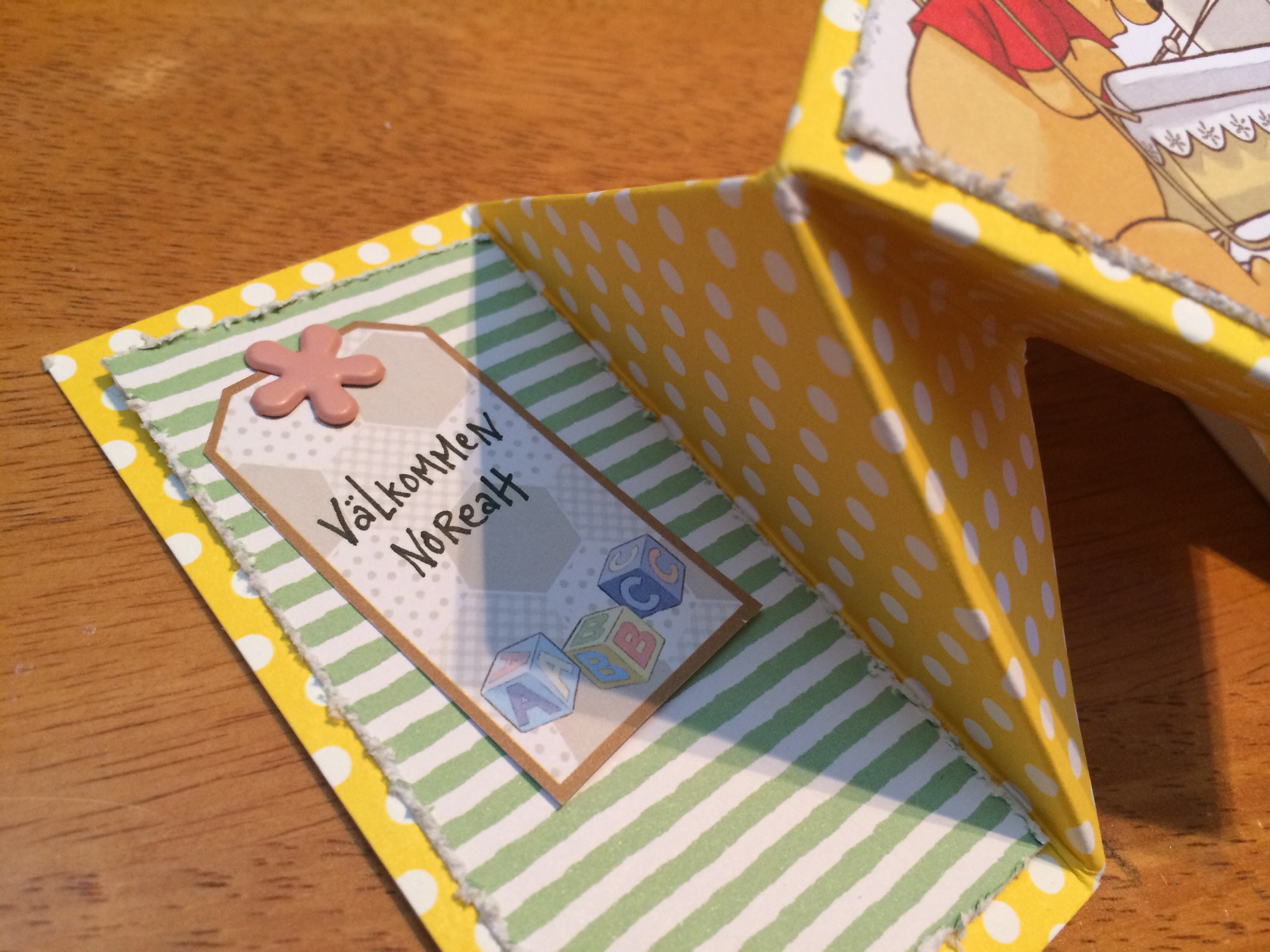 Min son har fått en tremänning. Vi skickade självklart paket, och jag gjorde det här kortet: