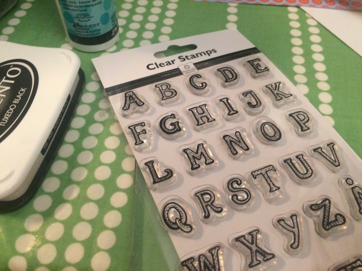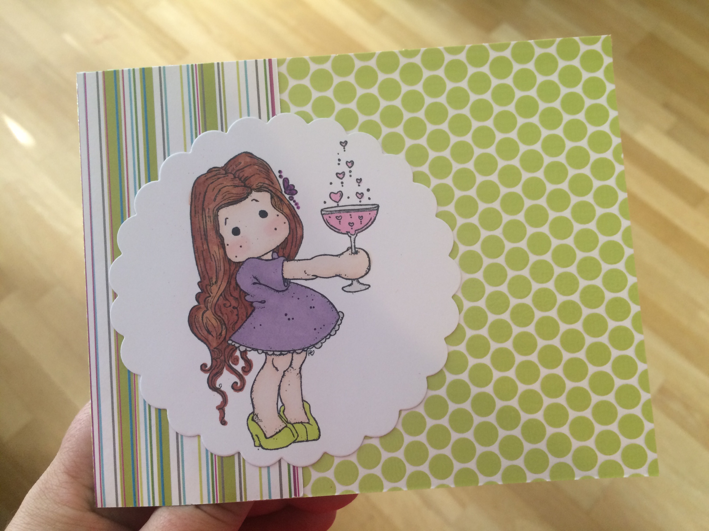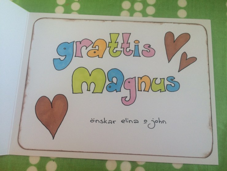 Till Katjas kort testade jag nya bokstavsstämplar. Helt okej men lite för små. Kul ändå att man kan färglägga bokstäverna.