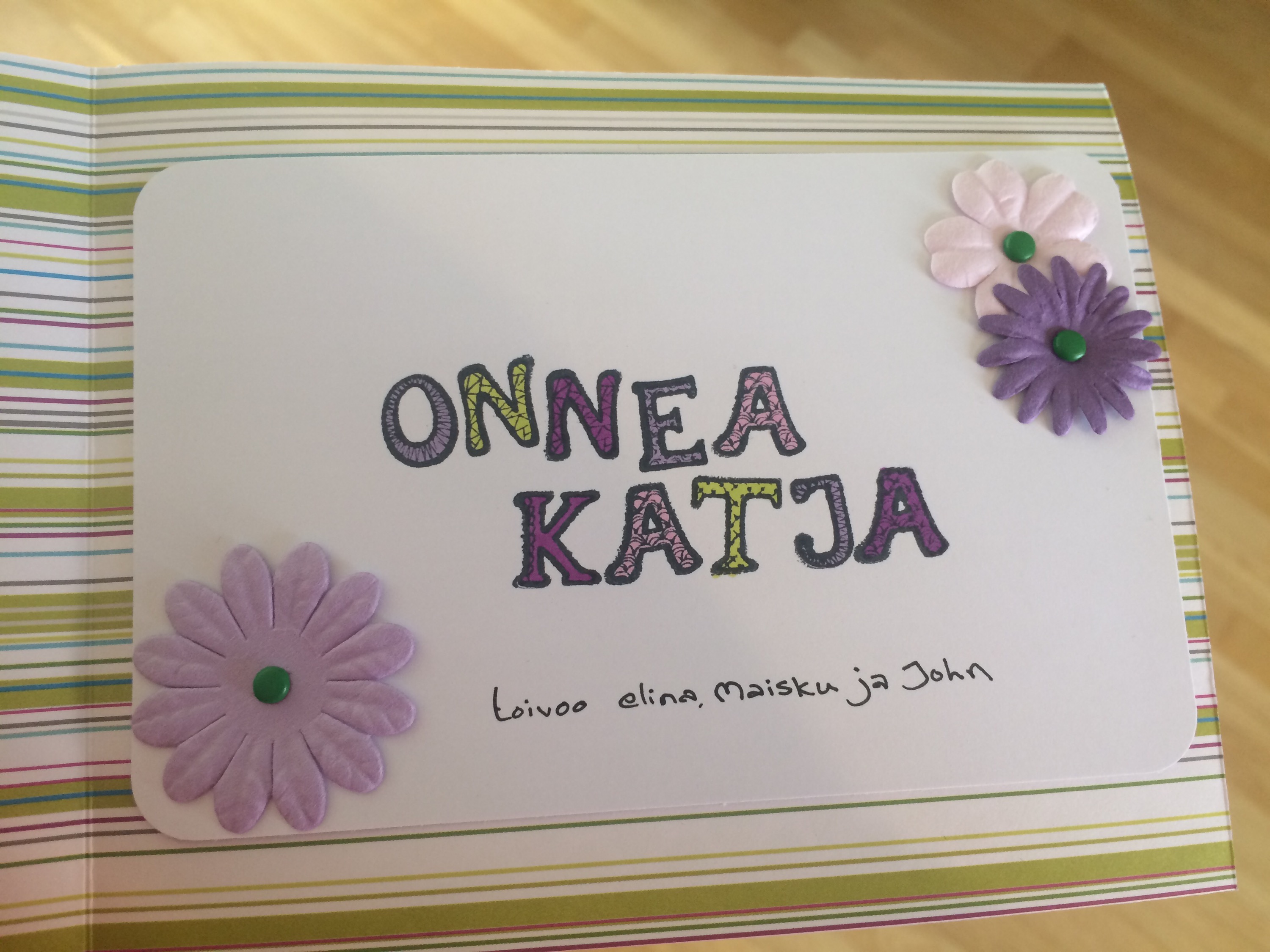 I morgon fyller syster Katja år. Hon fick kort och paket redan förra helgen när vi firade och hade pysselhelg hos Sara. Så här blev hennes kort: