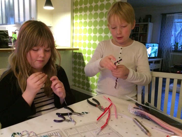 Syster Sara är på besök med familjen. Barnen passar på att pyssla med piprensare, ståltråd och pärlor. Bland annat blev det några polkagrisar som man kan hänga i granen. /Elina Dela gärna Dela på X (Öppnas i ett nytt fönster) X Dela på Facebook (Öppnas i ett nytt fönster) Facebook Share on Pinterest (Öppnas i ett nytt fönster) Pinterest Gilla Laddar in … Relaterade