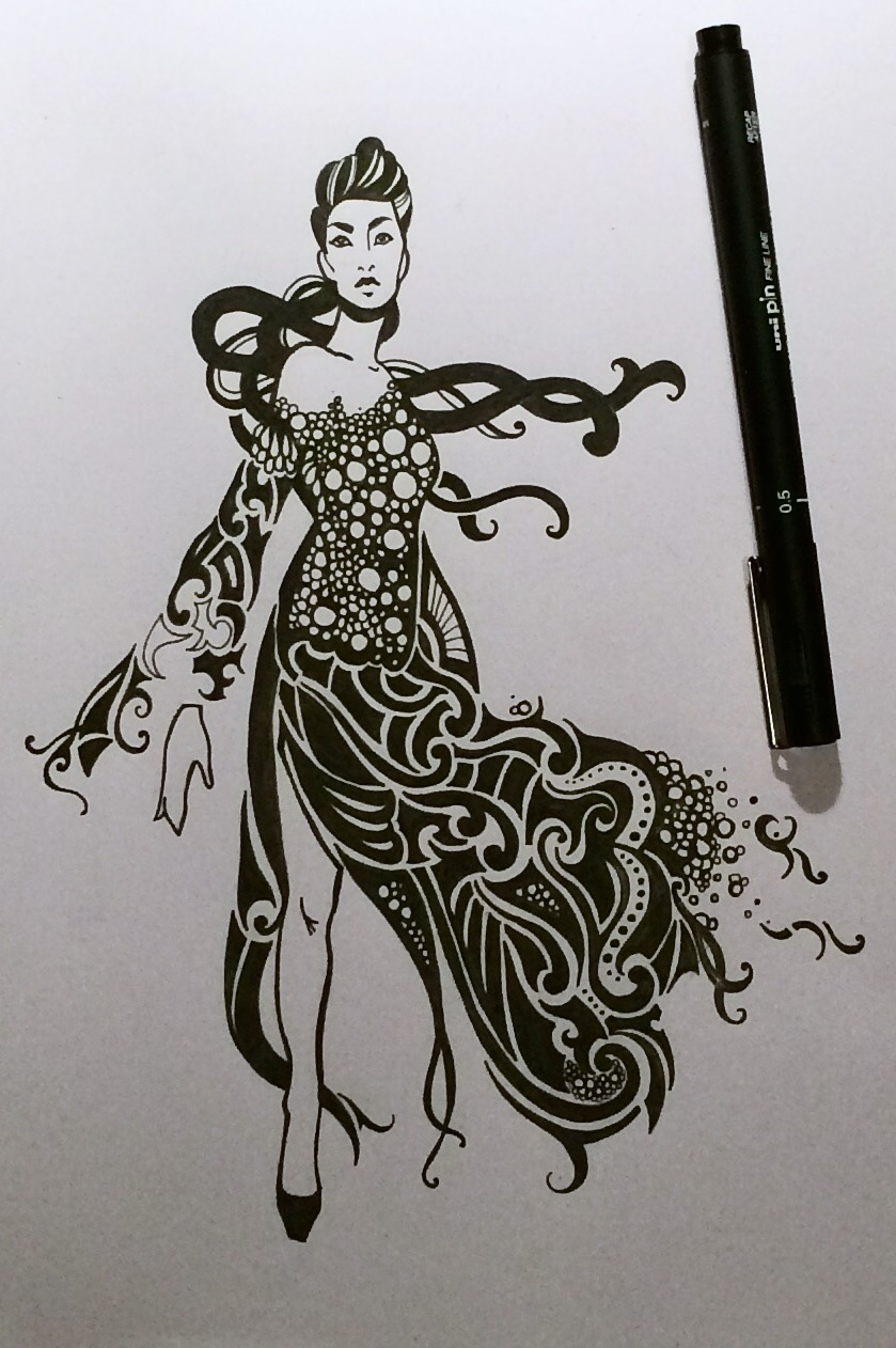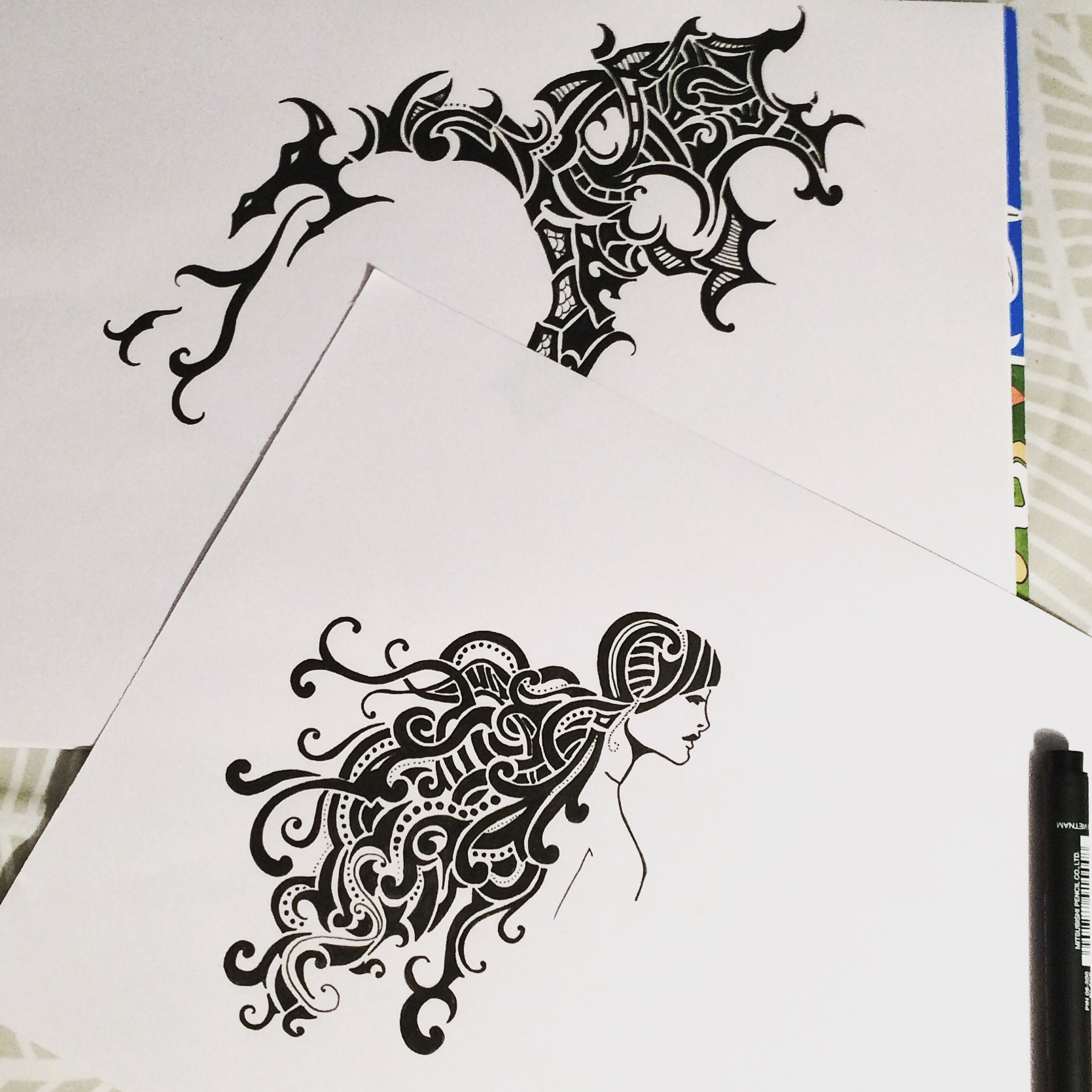 Häromdagen letade jag fram lite papper och svarta tuschpennor för att rita lite för första gången på riktigt länge. Det kändes att handen var ovan! Att sitta och rita mina krumelurer och lyssna på någon radiopod är ganska meditativt. Jag antar att det funkar som de där vuxen-målarböckerna man ser överallt. Så här blev det då: