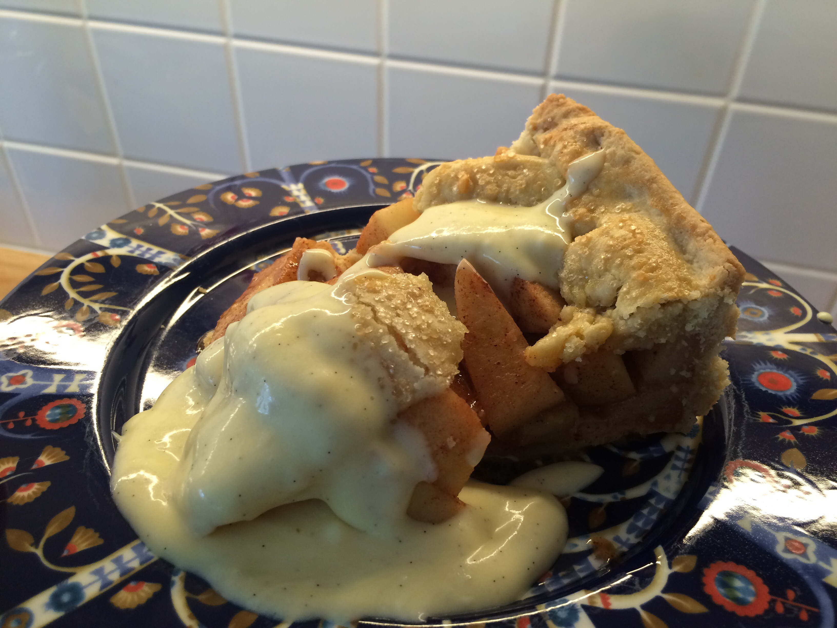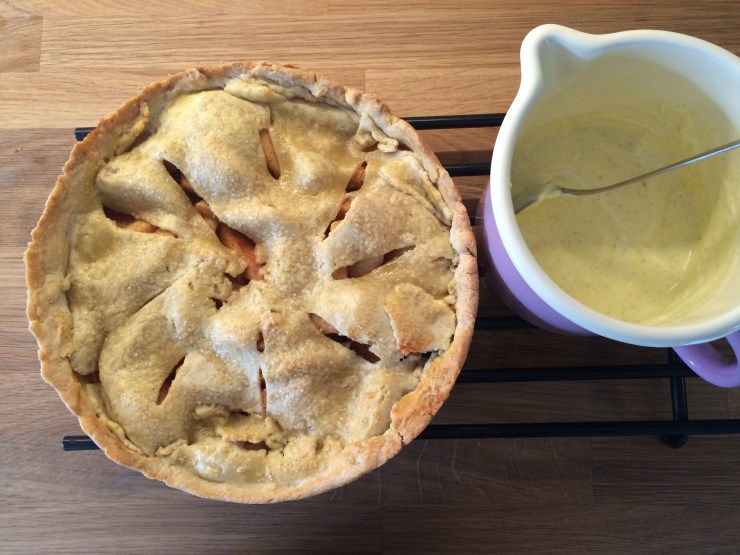 Men min man pysslade i köket. Han bakade sin klassiker – Leilas amerikanska äppelpaj. Så gott! Och hemgjord vaniljsås.