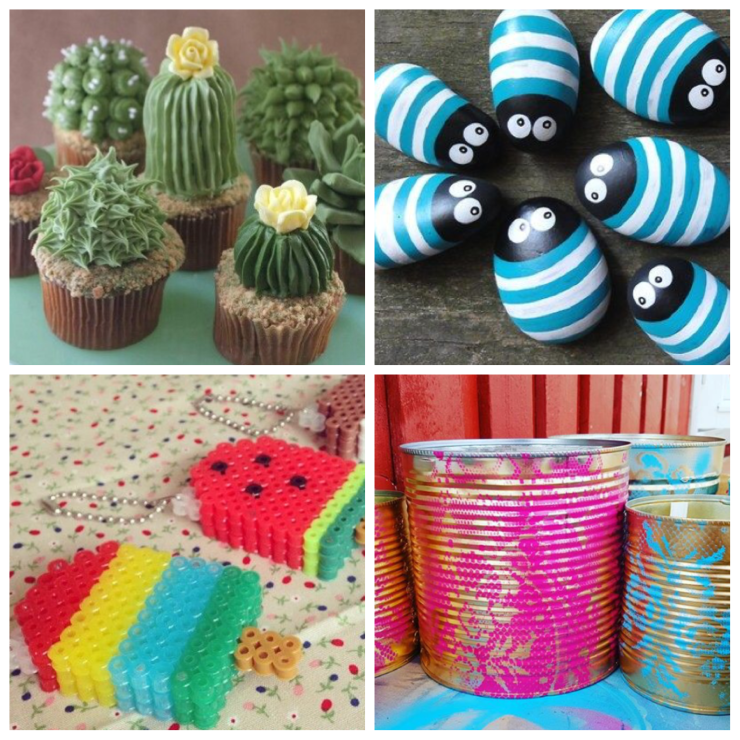 Kaktuscupcakes, målade stenar, pärlglassar och målade konservburkar.