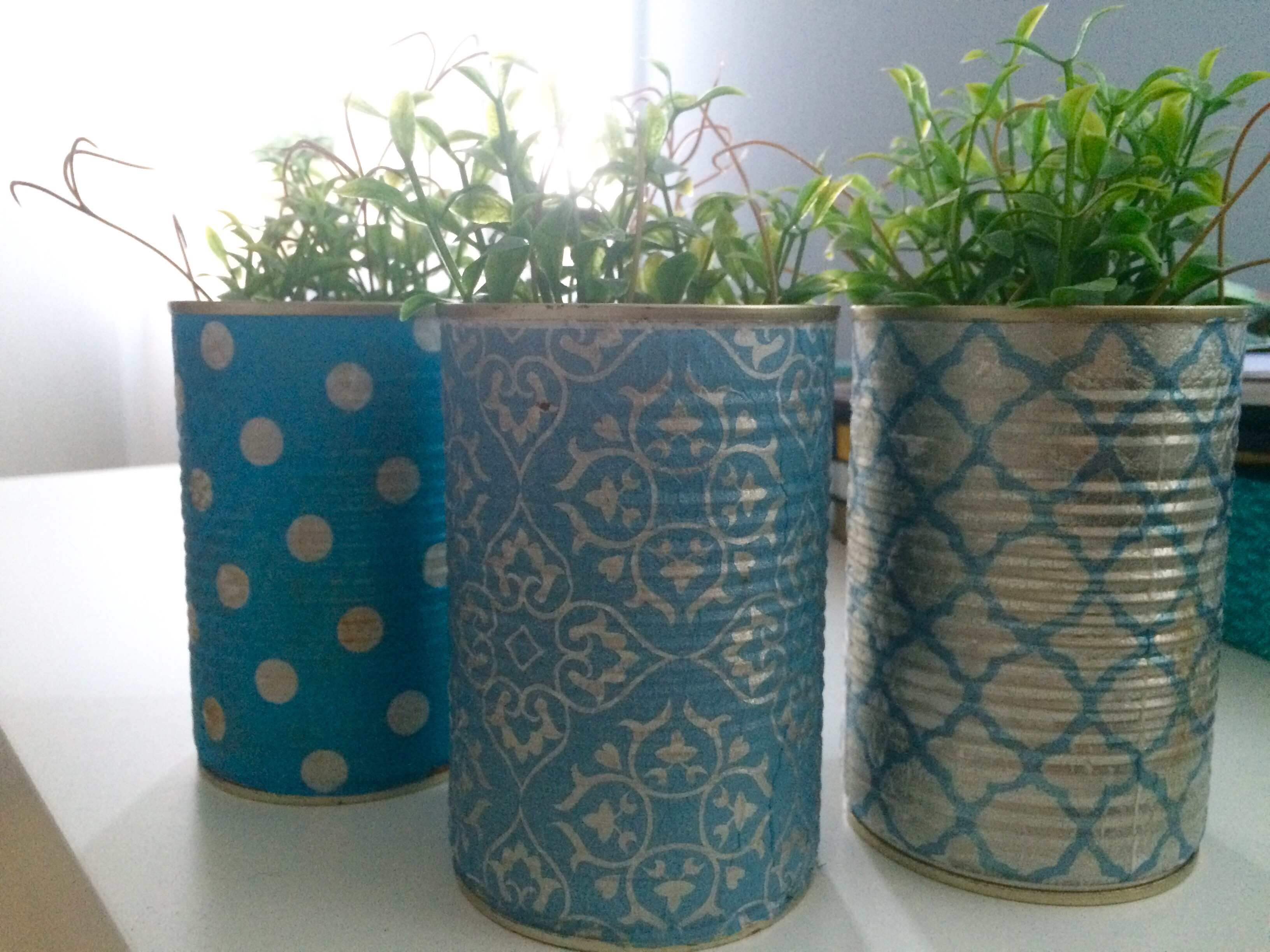 Jag har aldrig riktigt fastnat för decoupage-tekniken. Resultatet har aldrig blivit riktigt bra, men jag inspirerades av Elinas inlägg här på bloggen häromveckan och gjorde ett nytt försök! Nu använde jag tomma, rena konservburkar, för där spelar det ju faktiskt ingen roll om jag inte blir nöjd med resultatet. Materialet har ju inte kostat mig något.
