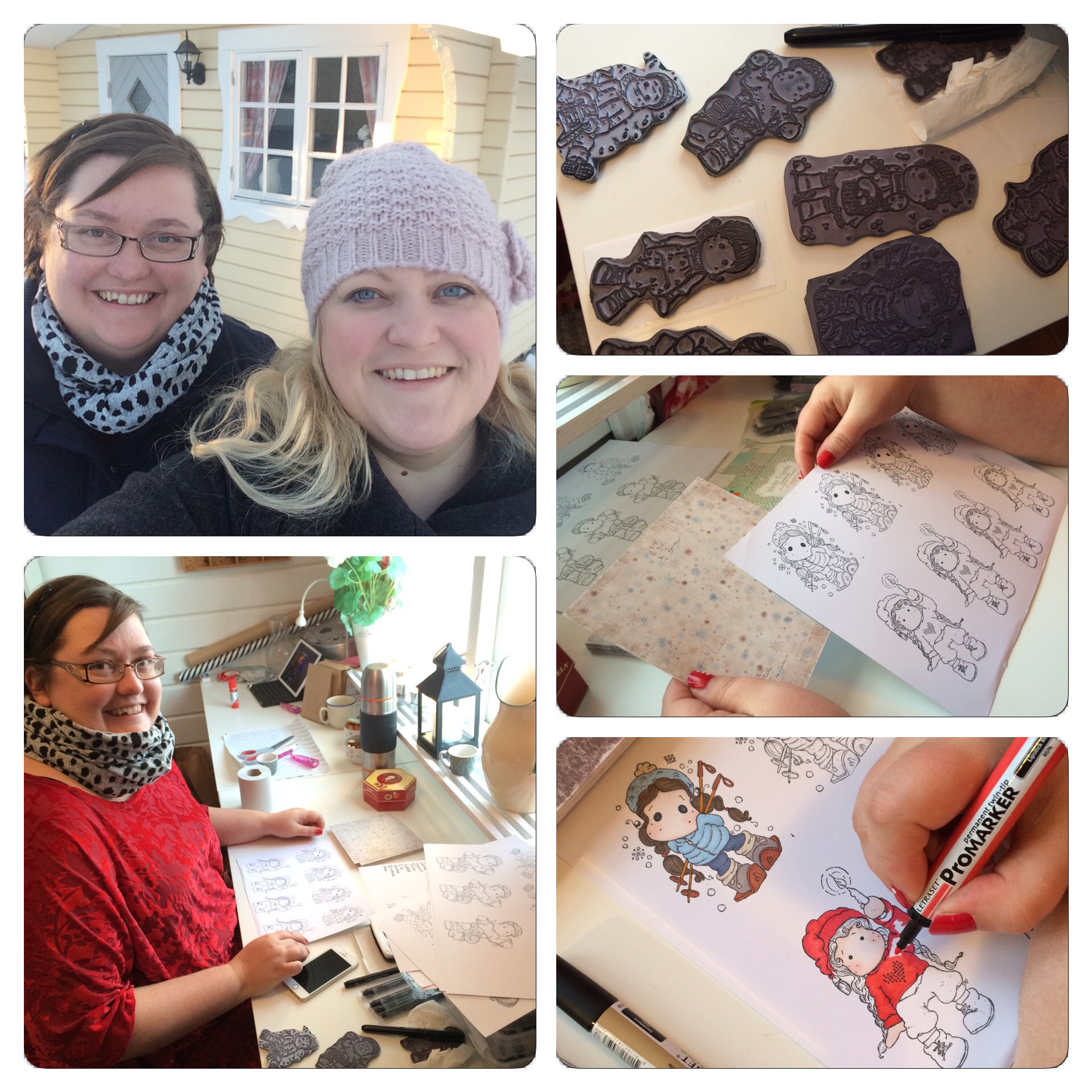 Elina hade med sig sina stämplar och promarker-pennor och började förbereda årets julkort.