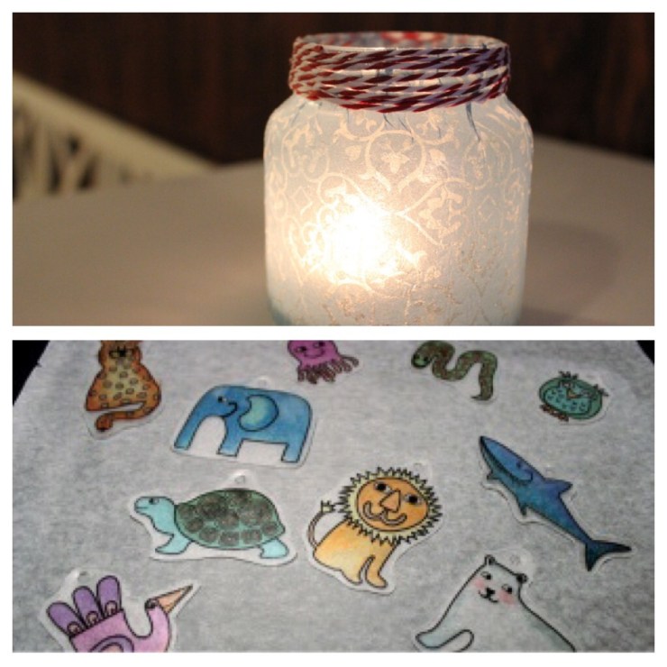 Jag upptäckte två nya roliga pyssel som jag inte testat tidigare – decoupage och krympplast.