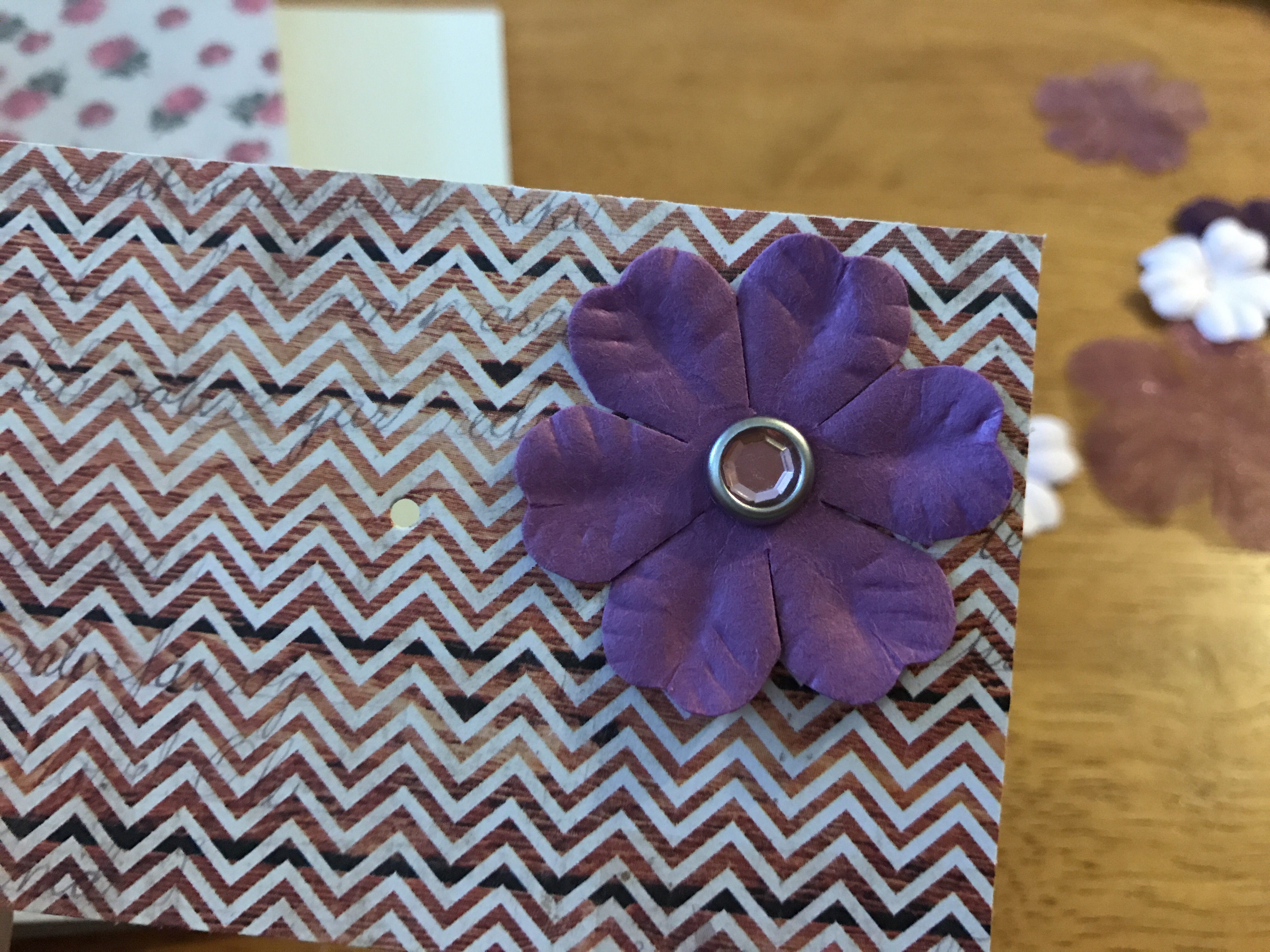 Jag sätter nästan alltid fast mina blommor med pappersklämmor i stället för lim eller dubbelhäftande tejp, för då vet jag att blommorna sitter fast där de ska.