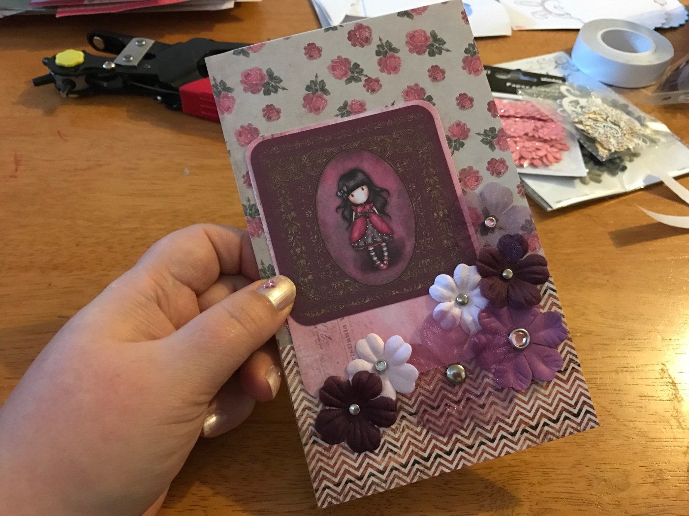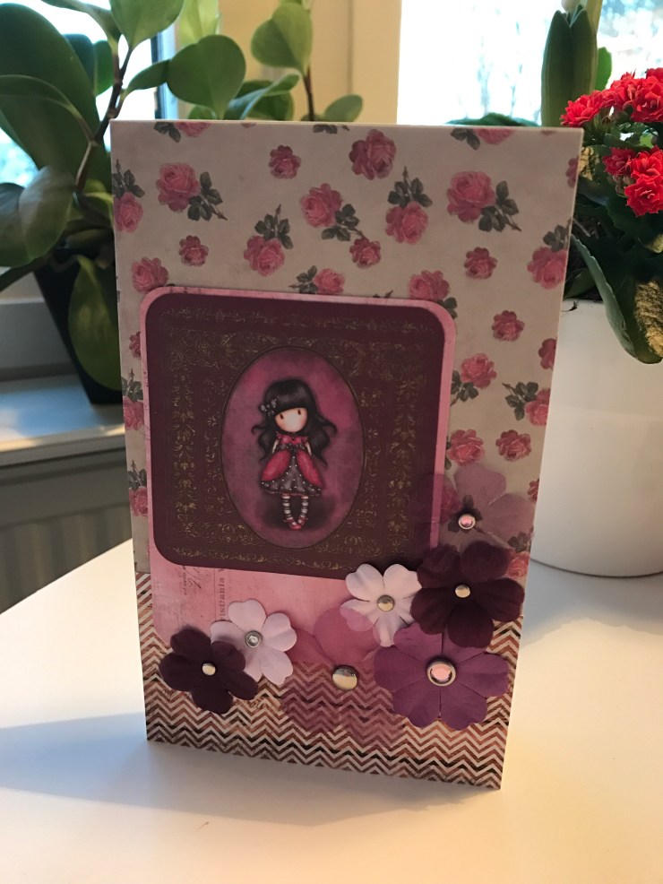 Gorjuss-flickan fick bli min inspiration. Med matchande papper och blommor försjönk jag i en skön kreativ vila.
