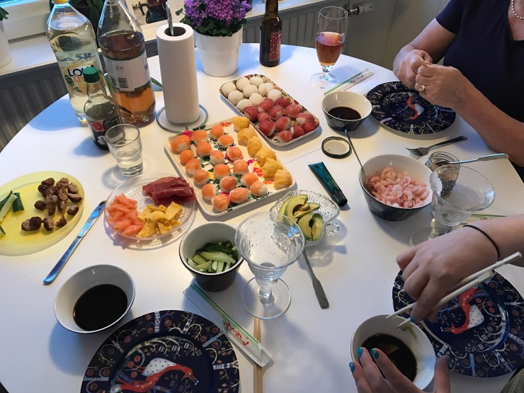 I helgen har jag faktiskt äntligen pysslat lite. Mamma var på besök och i lördags bjöd jag in Sara för pysselmys och middag. Och vad passar väl bättre på en pysselkväll än hemlagad sushi? Inget.