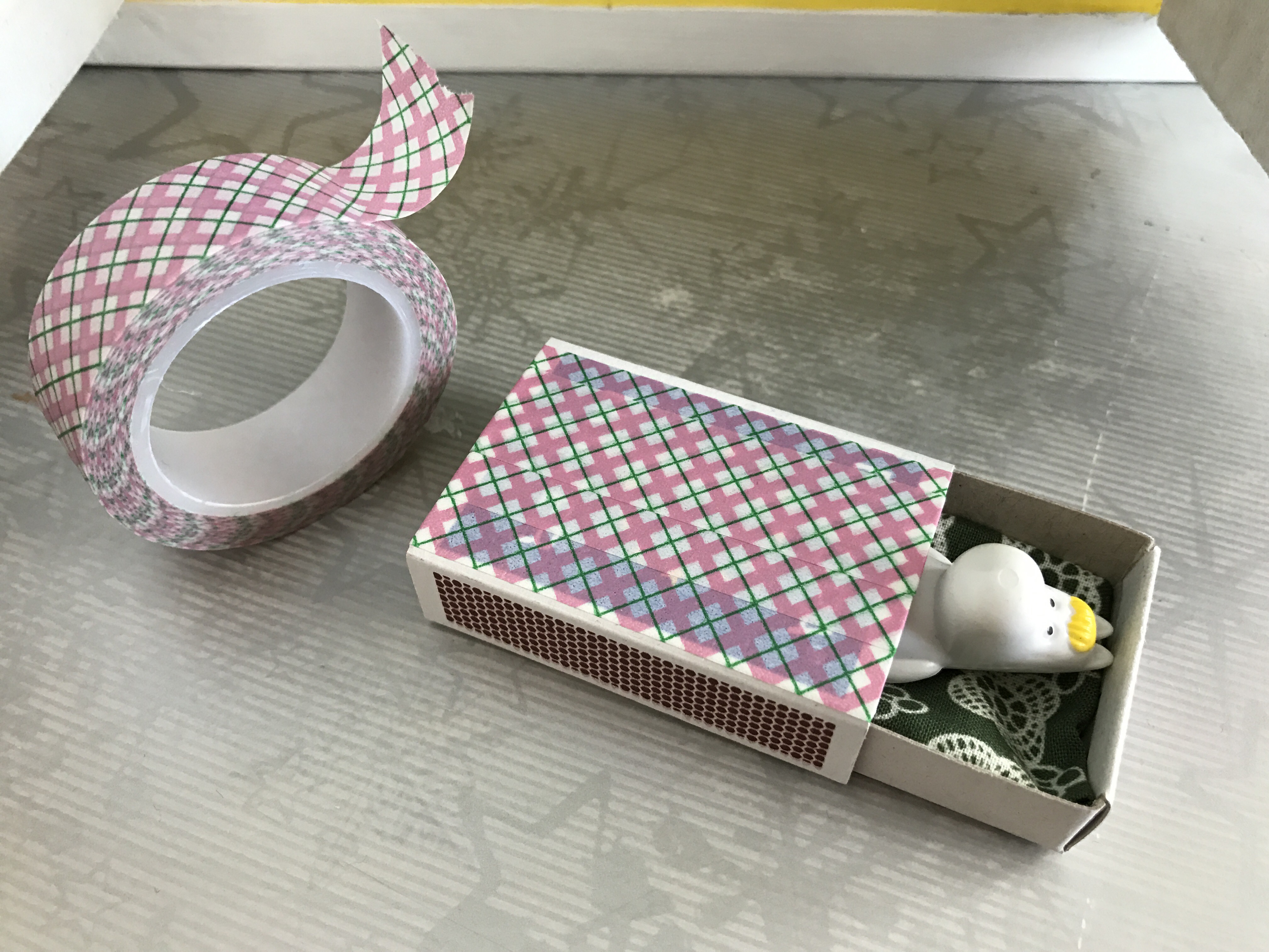 Jag gjorde också sängar och ett bord av tändsticksaskar och tejp. Tejpade också dit en matta.
