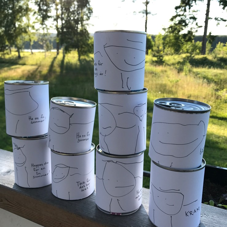 Totalt med en inhoppande vikarie är de nio stycken som jobbar på sonens avdelning, så det blev några burkar.
