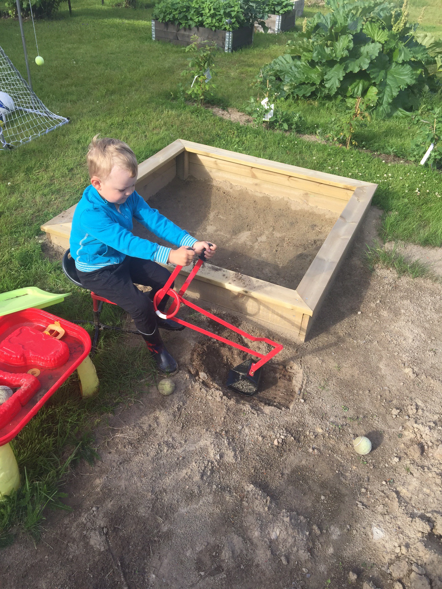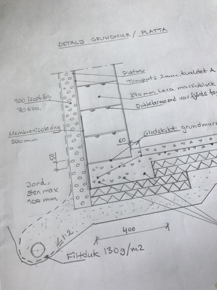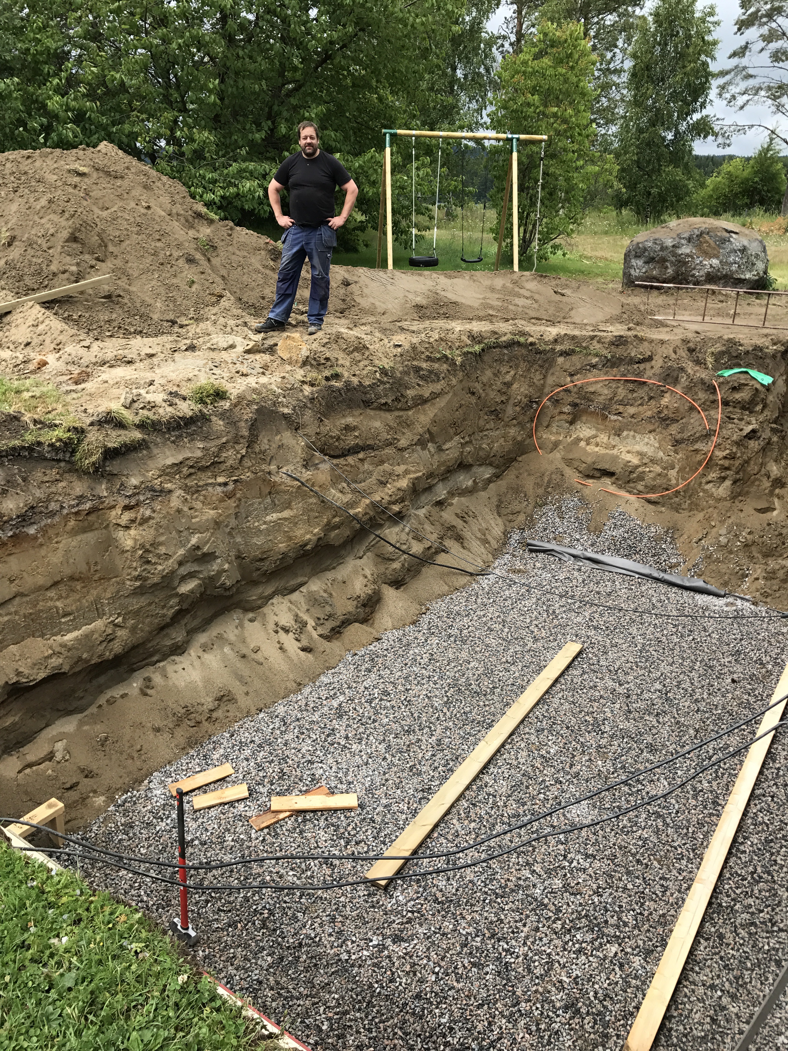 Nu är gropen grävd inför utbyggnaden. Det är tur att jag har en så händig man som kan sånt här – och som tycker det är kul att jobba i en stor grop.