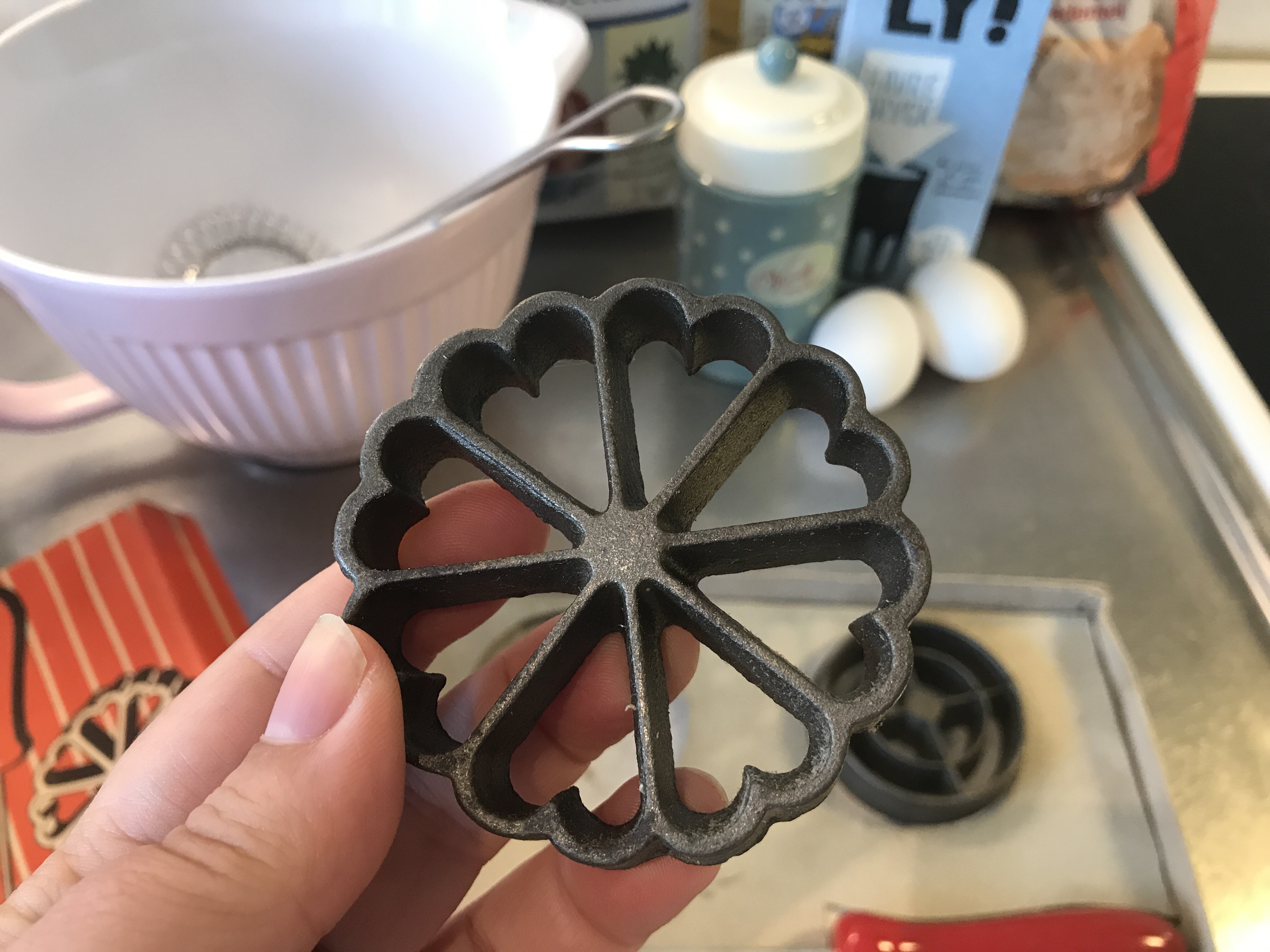 Varje julmarknad jag besöker köper jag antingen rullrån eller struvor. Det är ju så gott. I julas fick jag den bästa julklappen – ett struvjärn (jag har ingen aning om det heter så) av mamma. Nu var det dags att testa baka egna sådana!
