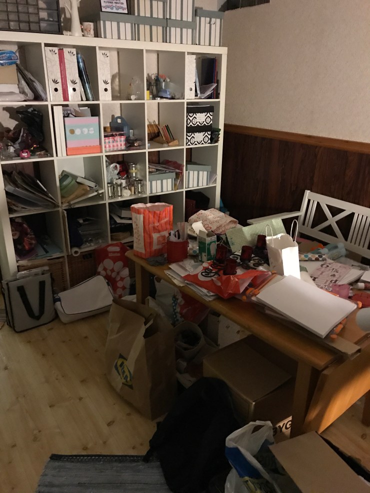 Så här ser mitt pysselrum ut. Får inte mycket gjort där…