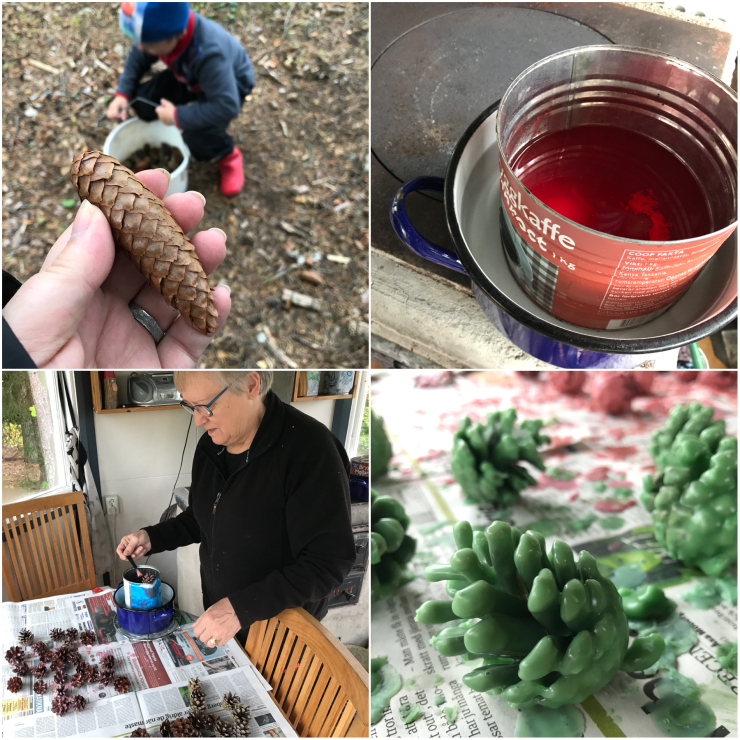 Är hos mamma i helgen och pysslar. Vi har bland annat samlat kottar och doppat dem i smält stearin. Perfekta som braständare i vinter. Och fina blir de också. Blev extra nöjd med den gröna färgen. Ser ut som karameller! /Elina Dela gärna Dela på X (Öppnas i ett nytt fönster) X Dela på Facebook (Öppnas i ett nytt fönster) Facebook Share on Pinterest (Öppnas i ett nytt fönster) Pinterest Gilla Laddar in … Relaterade