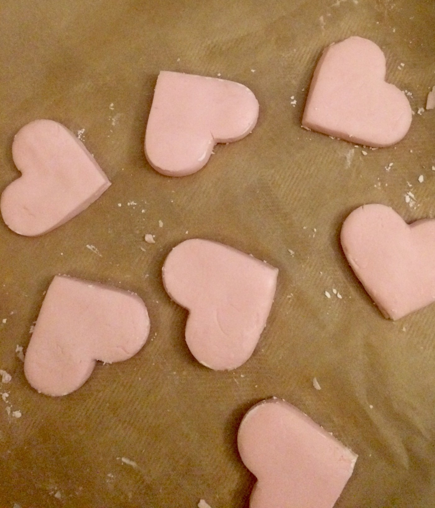 Man blandar ingredienserna till en deg som man plattar till och tar ut former ur. Doppa formen i maizena annars fastnar massan.