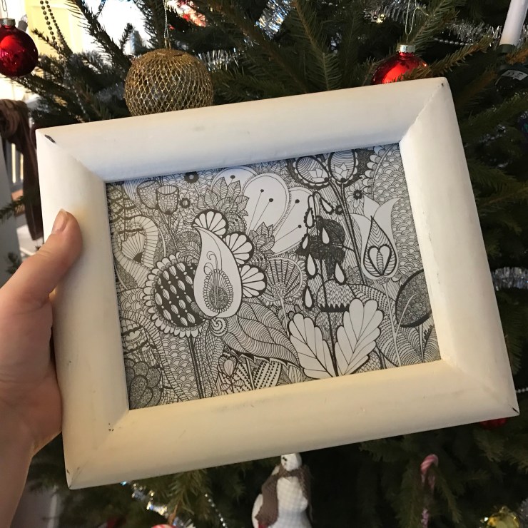 Jag har åtminstone doodlat lite. Här en tavla som jag gav en kär vän i julklapp. Det roliga var att jag påbörjade den här teckningen i Bahia Feliz vid poolkanten på samma hotell dit hon snart åker.