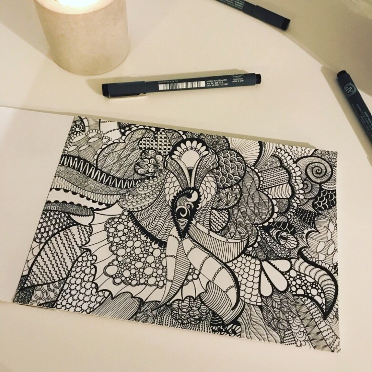 Här är min senaste teckning som jag doodlat. Det är flera element jag blev nöjd med och den kommer jag nog att rama in. Här är favorithörnet: