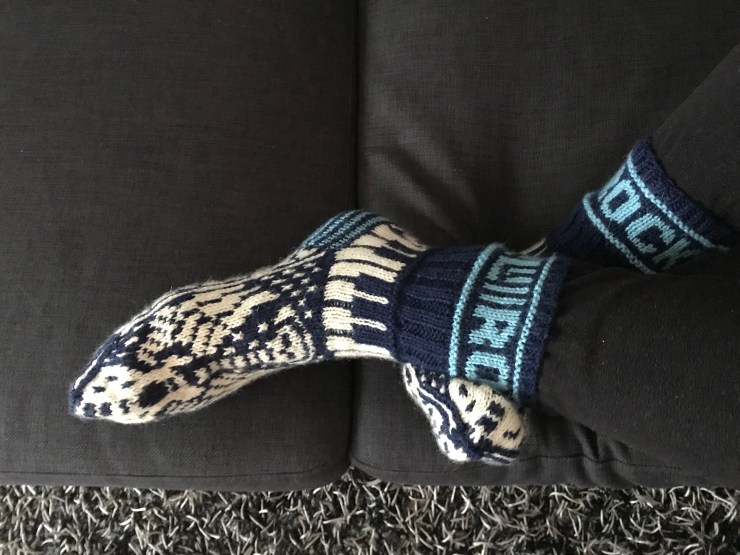 Jag är i Vemdalen med min familj, brorsans familj och mamma. Och mamma imponerade och överraskade oss med de här fina tjocksockarna, eller raggsockor som man säger mer söderut, stickade strumpor alltså.