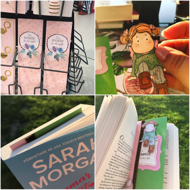 Men. Har ju inget bokmärke. På Alademibokhandeln blev jag inspirerad att scrappa ett eget med texten: I’m booked for the night.