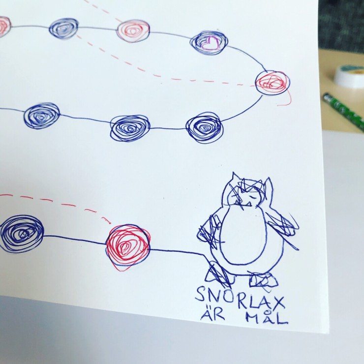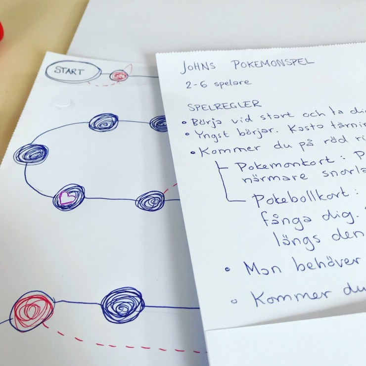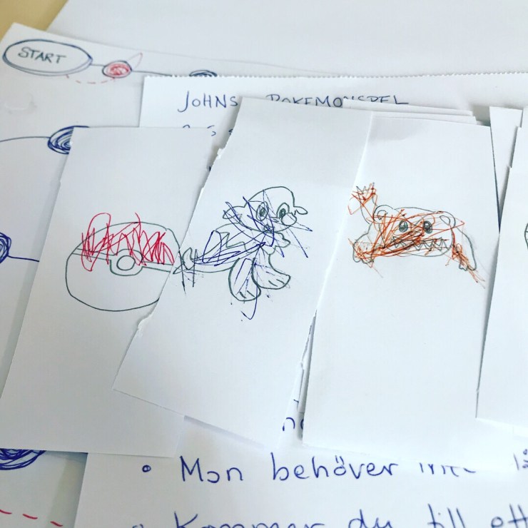 I dag pysslade vi ett Pokémon-spel ute i husvagnen.