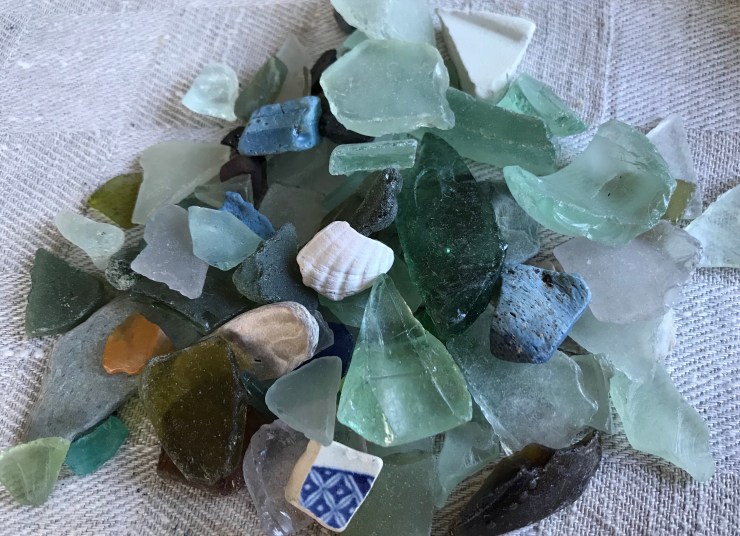 Jag har under de senaste åren samlat på mig strandglasbitar. Jag tycker att de är så fina och önskar att jag kände till en bra strand där man kunde göra en massa fynd!