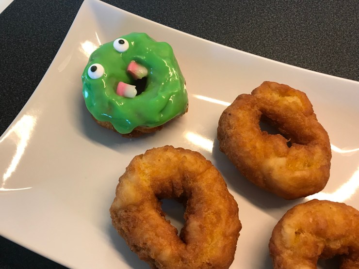Vi gjorde först egna munkar, men det går ju så klart att köpa färdiga men helst ska de vara osockrade.