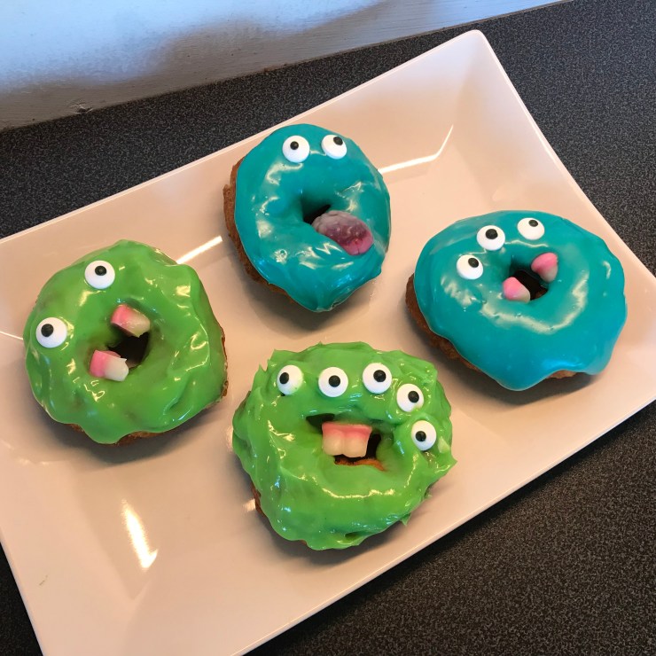 I år tänkte vi inte ha någon läskig spökfest till halloween. Däremot bjuda vänner på lite monsterfika.