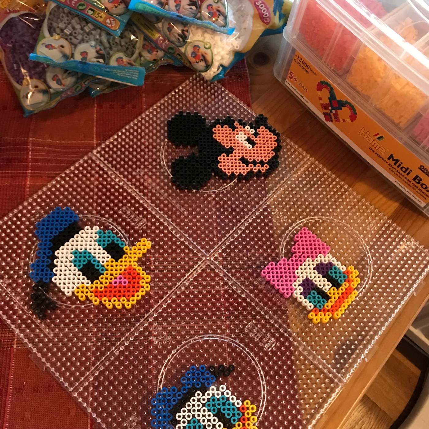 I år bestämde jag och sonen att vi ville ha Disney-tema nere i Gillestugan i jul. Men att hitta Disneypynt att köpa kan ju vara både svårt och dyrt. Så därför tog vi fram våra pärlplattor!